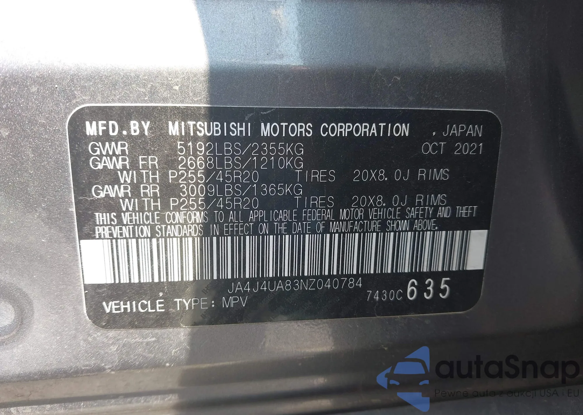 VIN: JA4J4UA83NZ040784