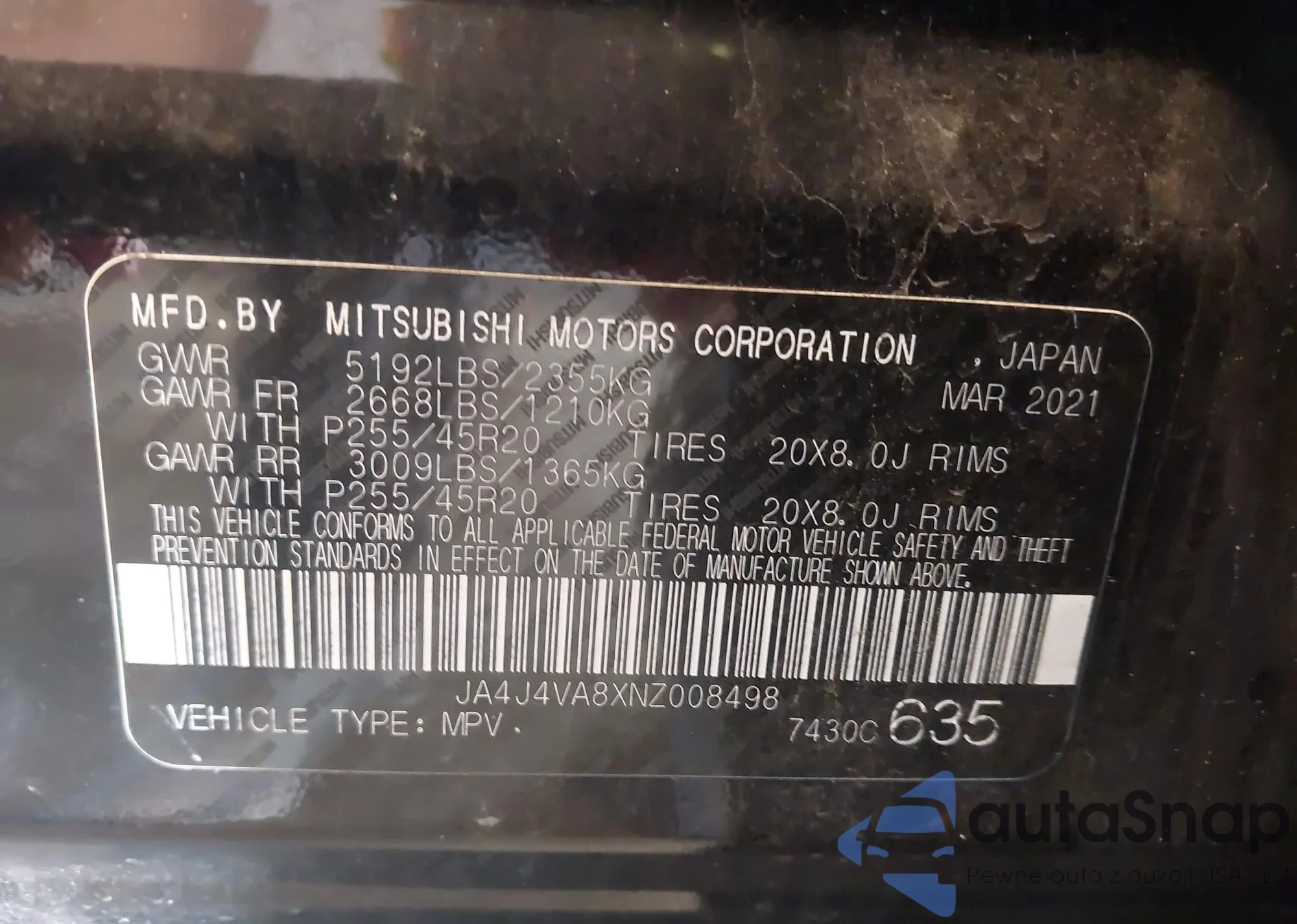 VIN: JA4J4VA8XNZ008498