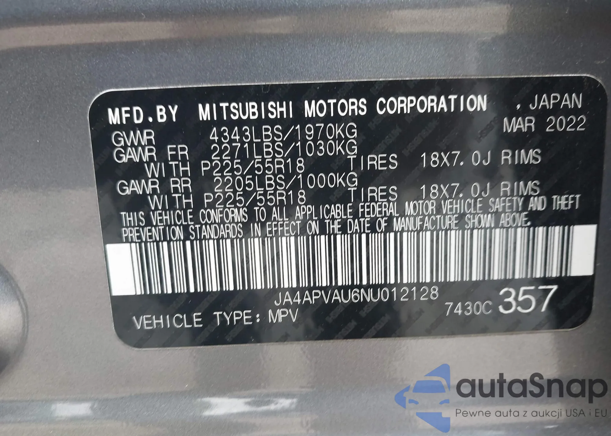 • VIN: JA4APVAU6NU012128
