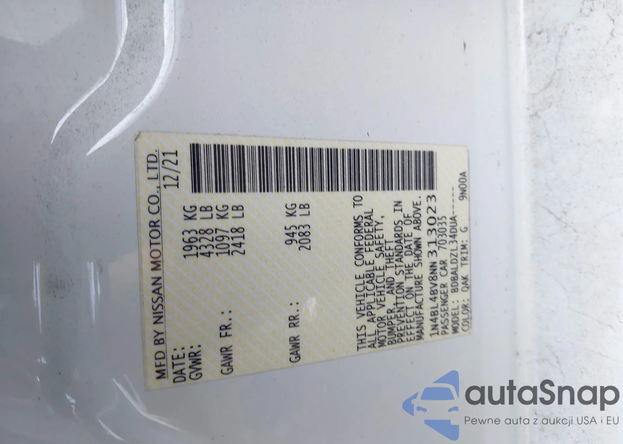 VIN: 1N4BL4BV8NN313023