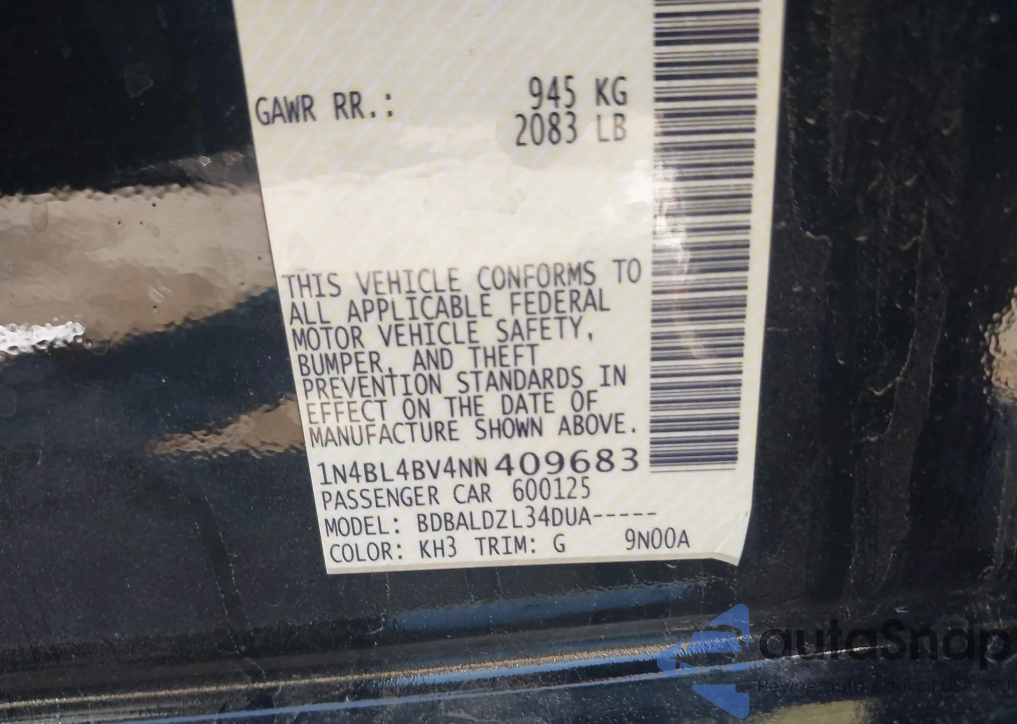 • VIN: 1N4BL4BV4NN409683
