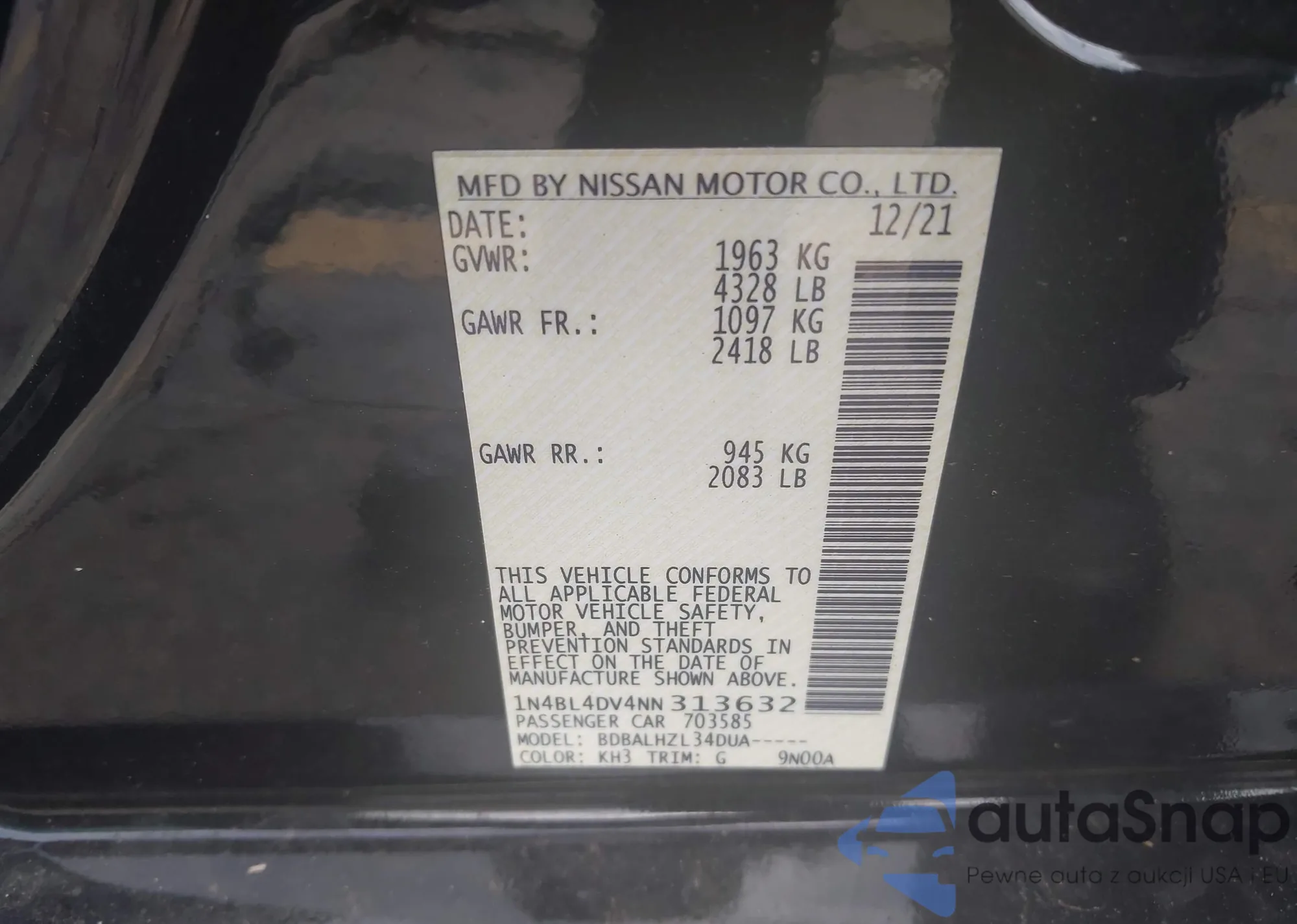 VIN: 1N4BL4DV4NN313632