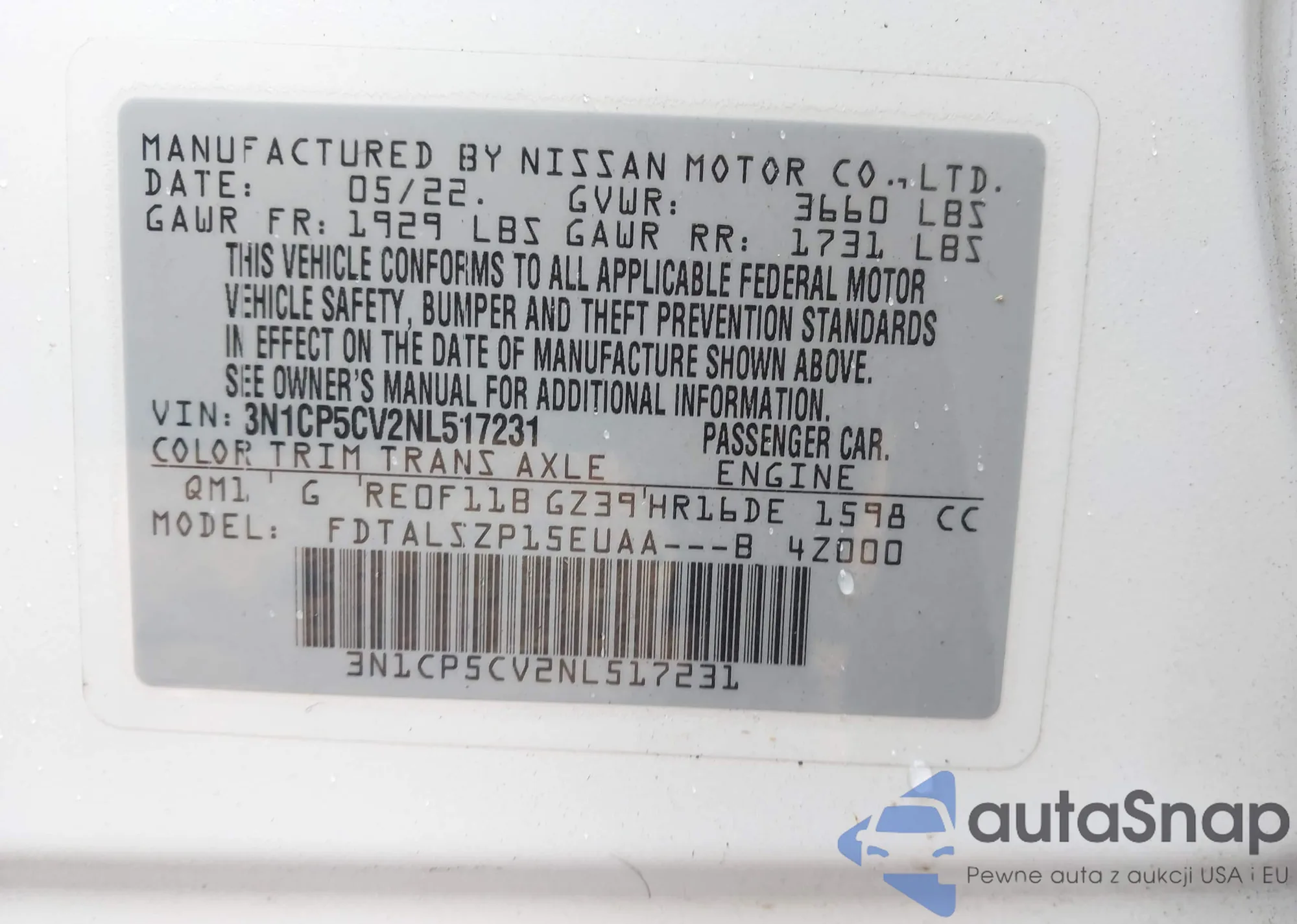 VIN: 3N1CP5CV2NL517231