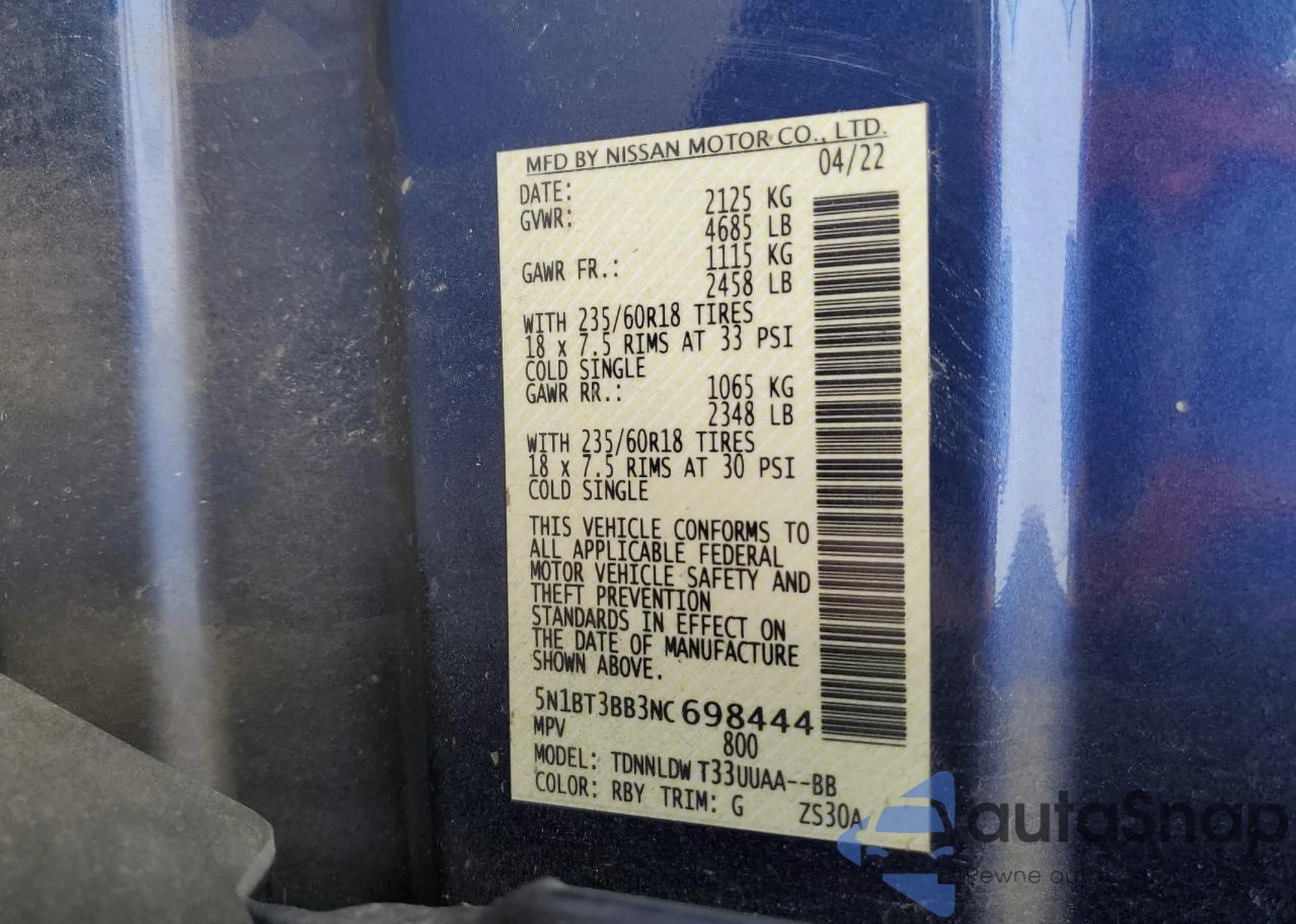 VIN: 5N1BT3BB3NC698444