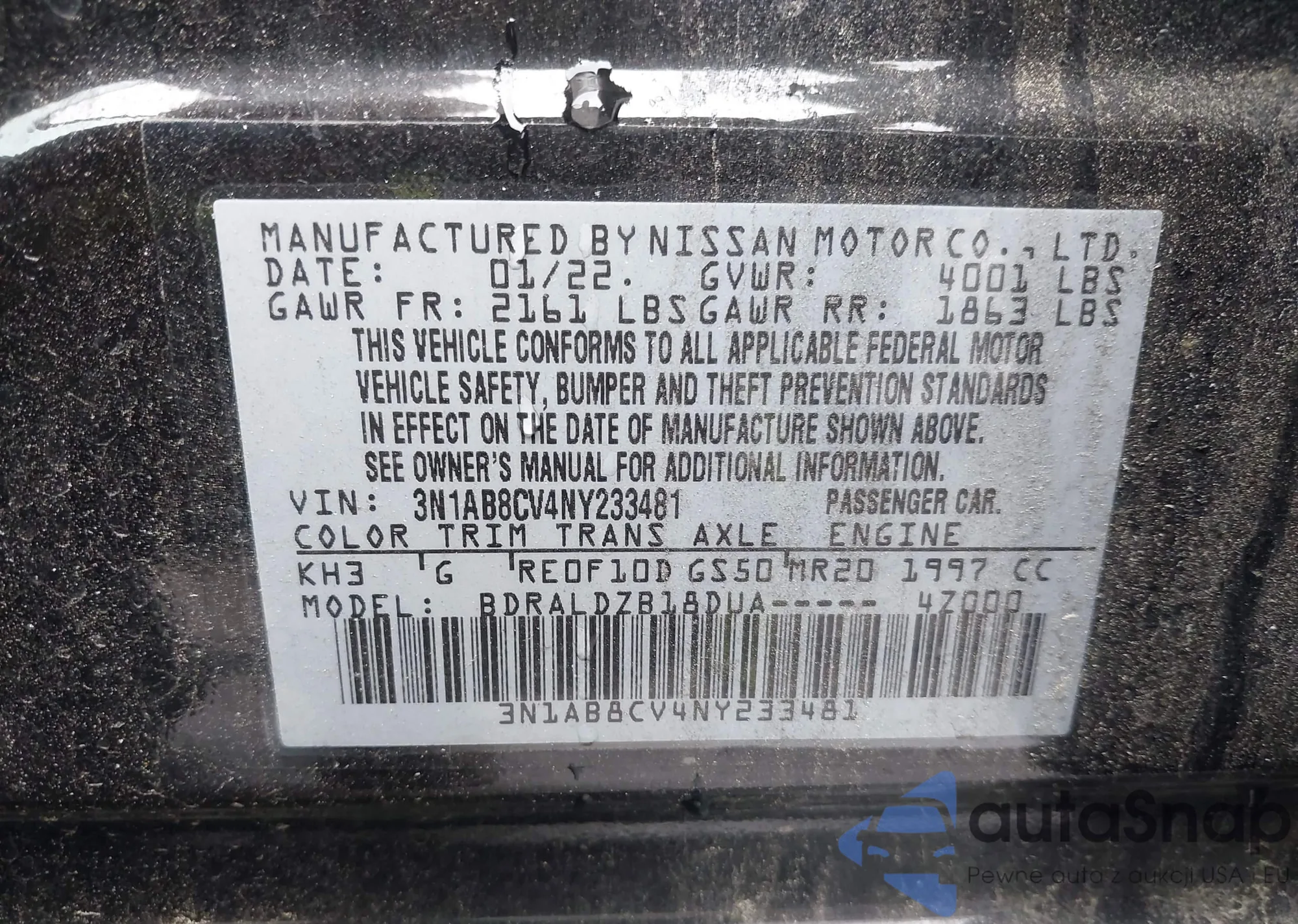 VIN: 3N1AB8CV4NY233481