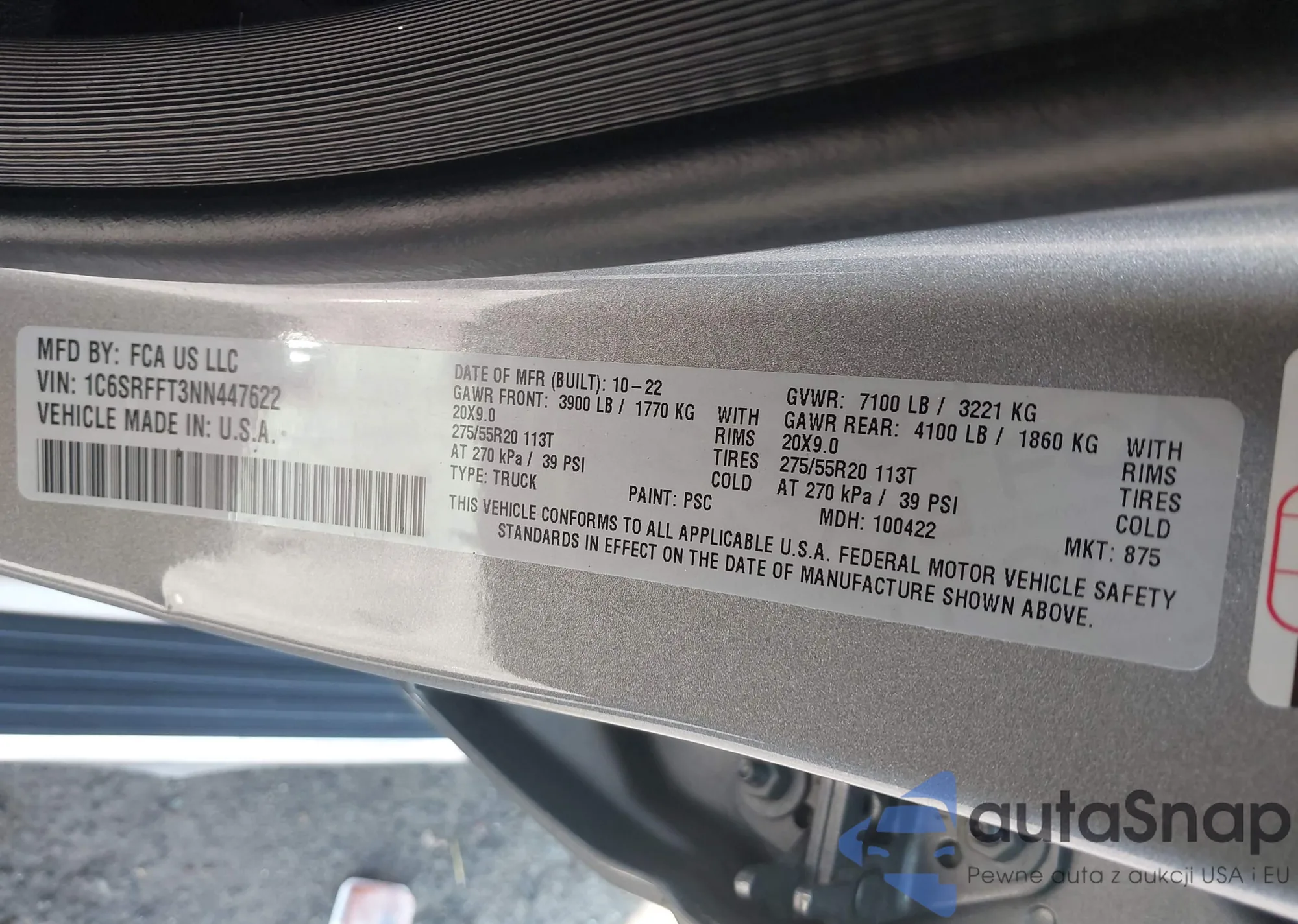 VIN: 1C6SRFFT3NN447622