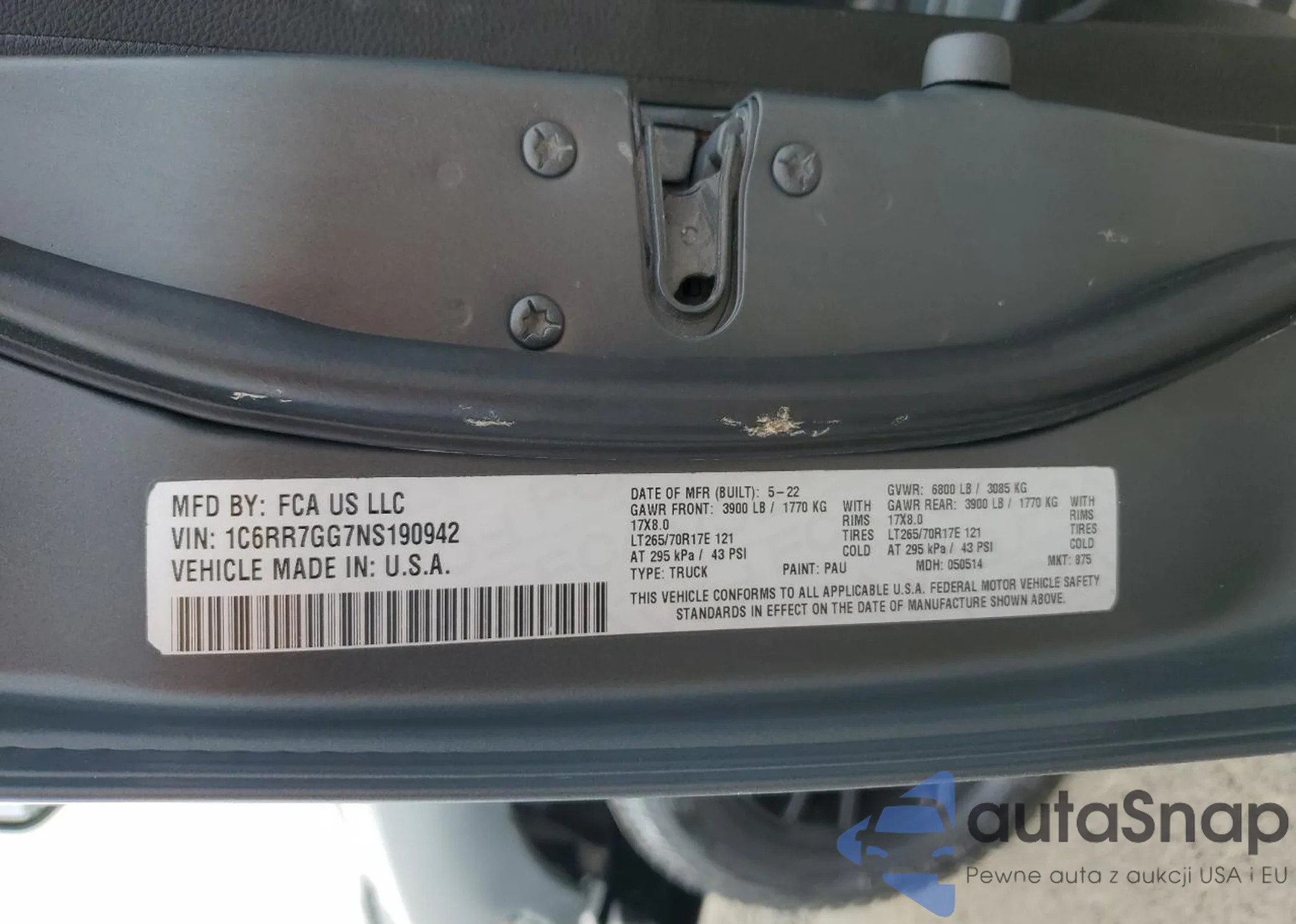 VIN: 1C6RR7GG7NS190942