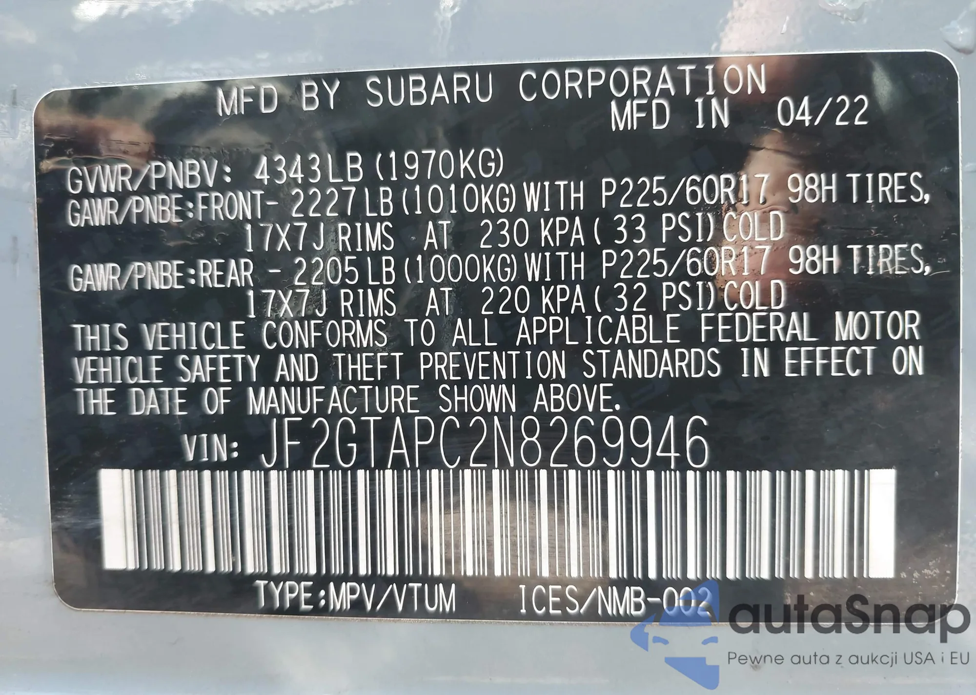 VIN: JF2GTAPC2N8269946