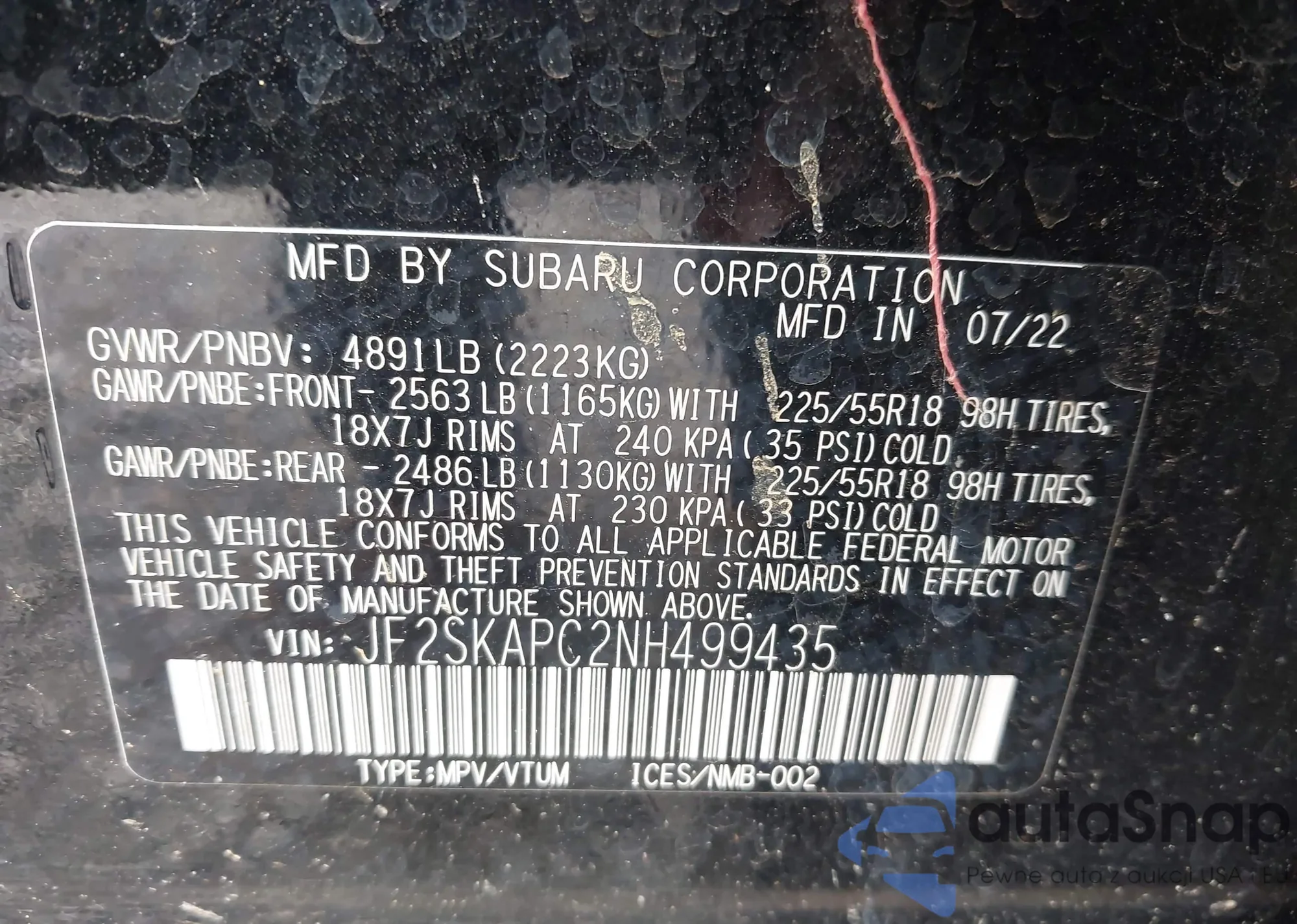 JF2SKAPC2NH499435 IAAI