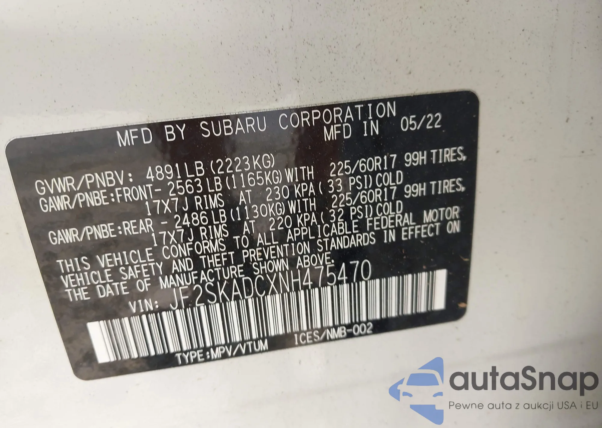 VIN: JF2SKADCXNH475470