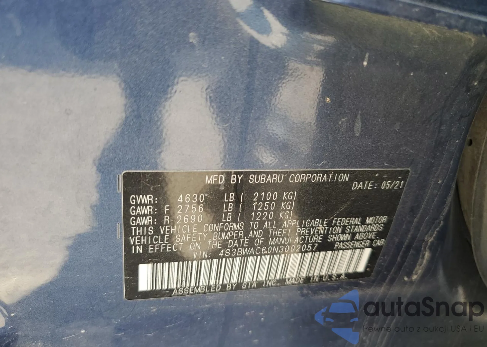 VIN: 4S3BWAC60N3002057