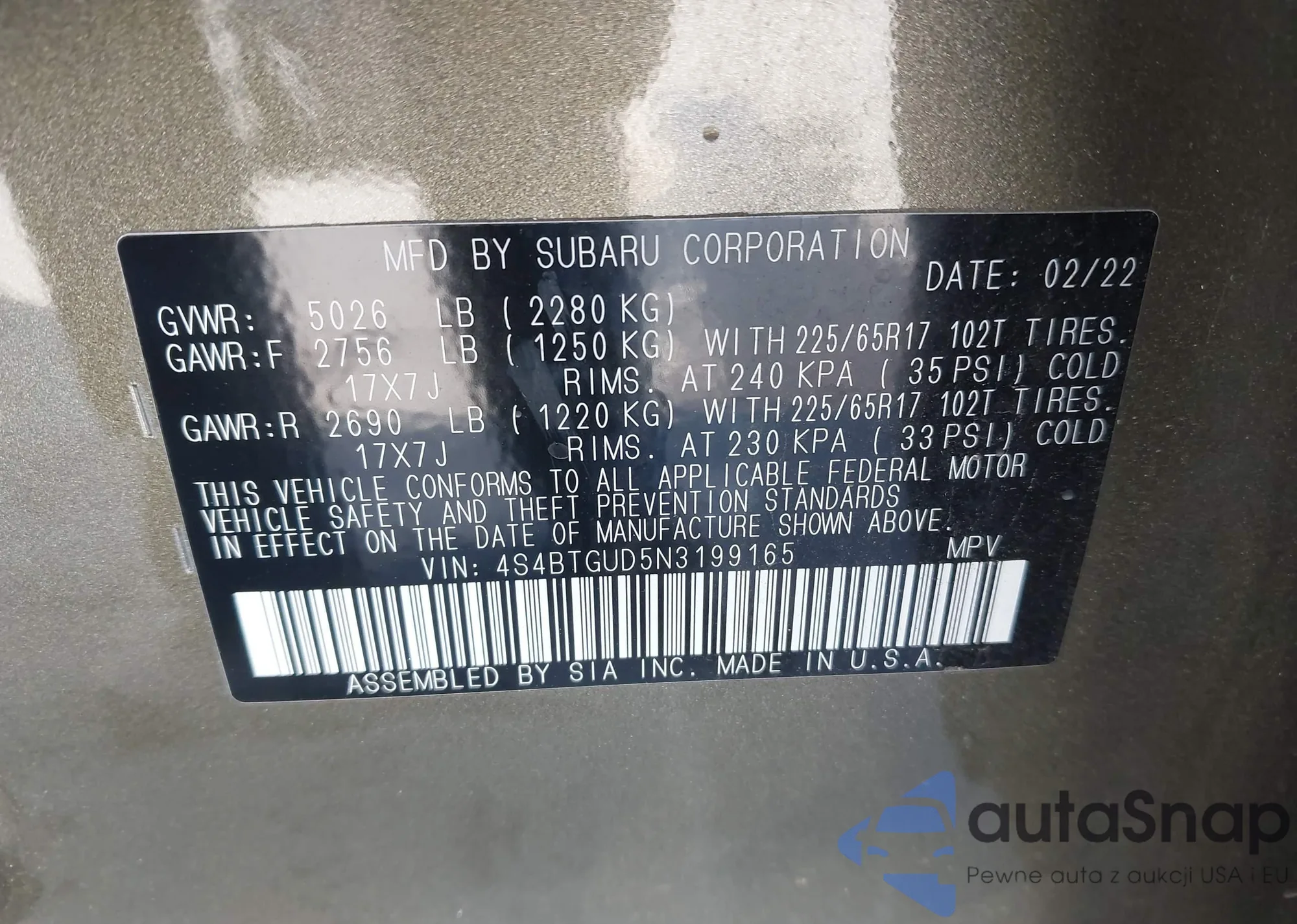 VIN: 4S4BTGUD5N3199165