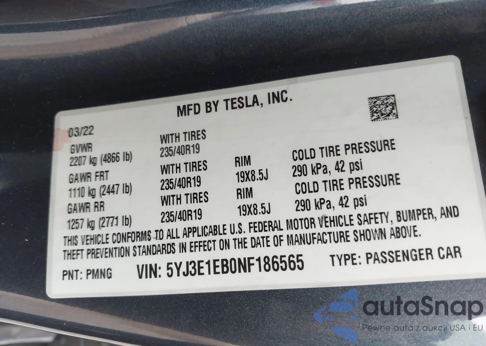 • VIN: 5YJ3E1EB0NF186565