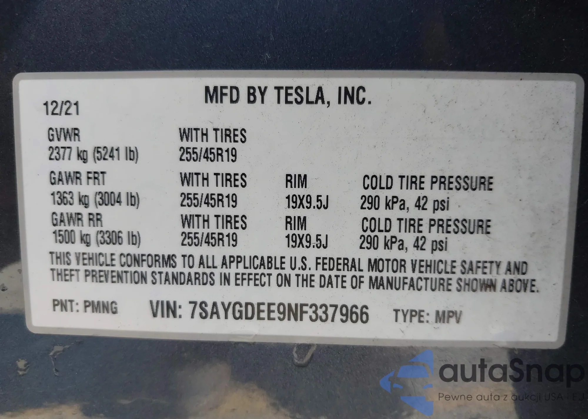 • VIN: 7SAYGDEE9NF337966