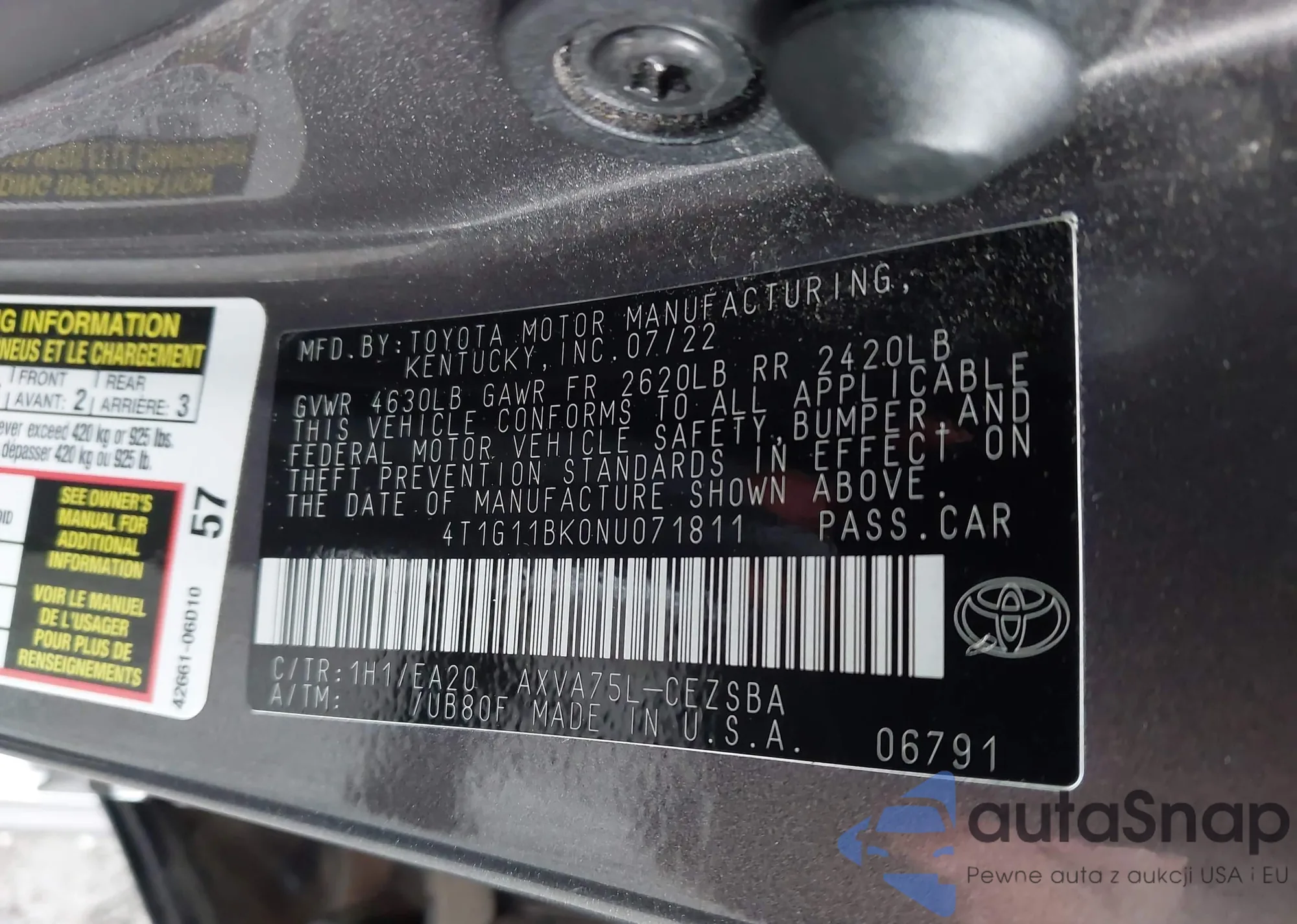 VIN: 4T1G11BK0NU071811