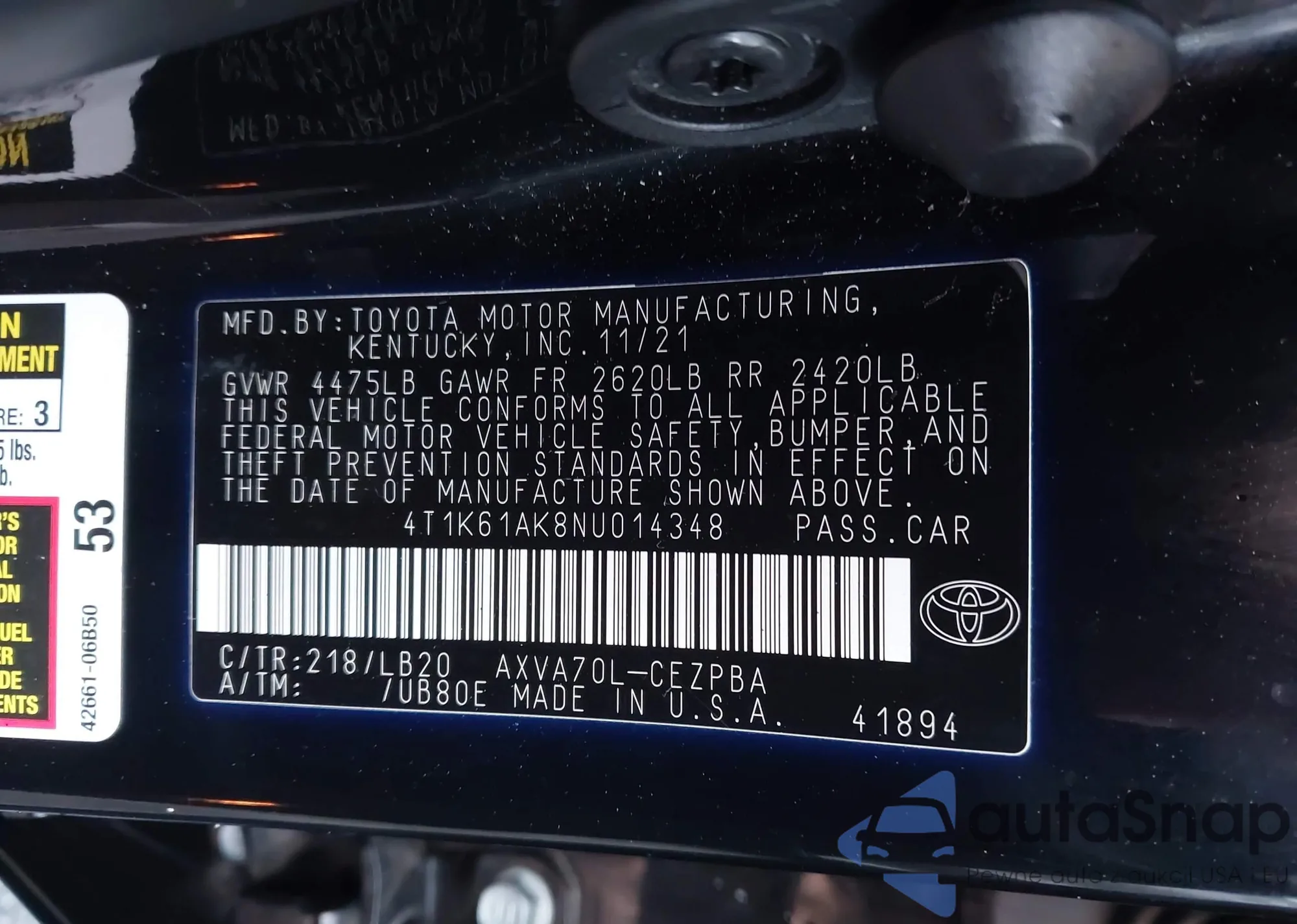 VIN: 4T1K61AK8NU014348