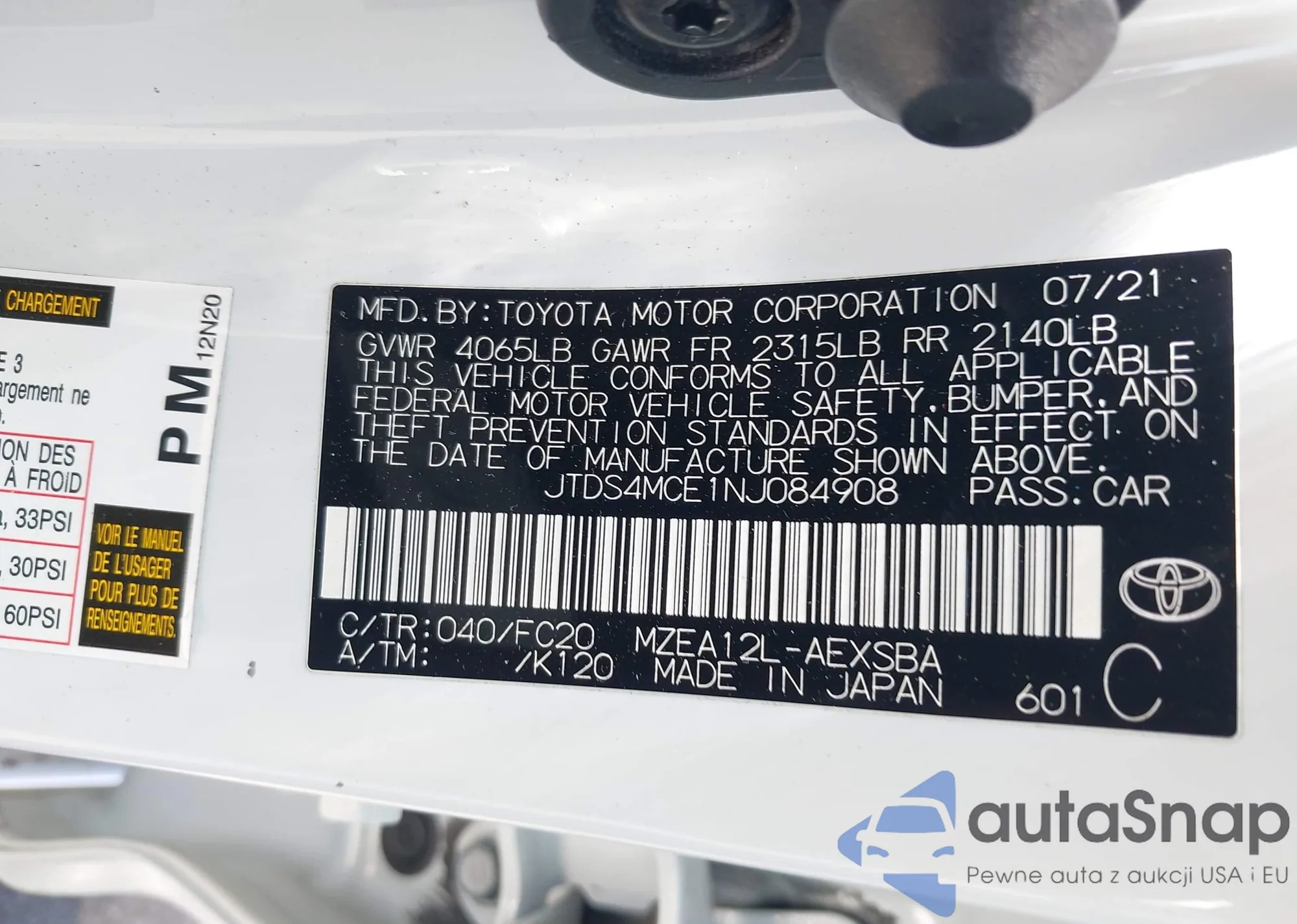 VIN: JTDS4MCE1NJ084908