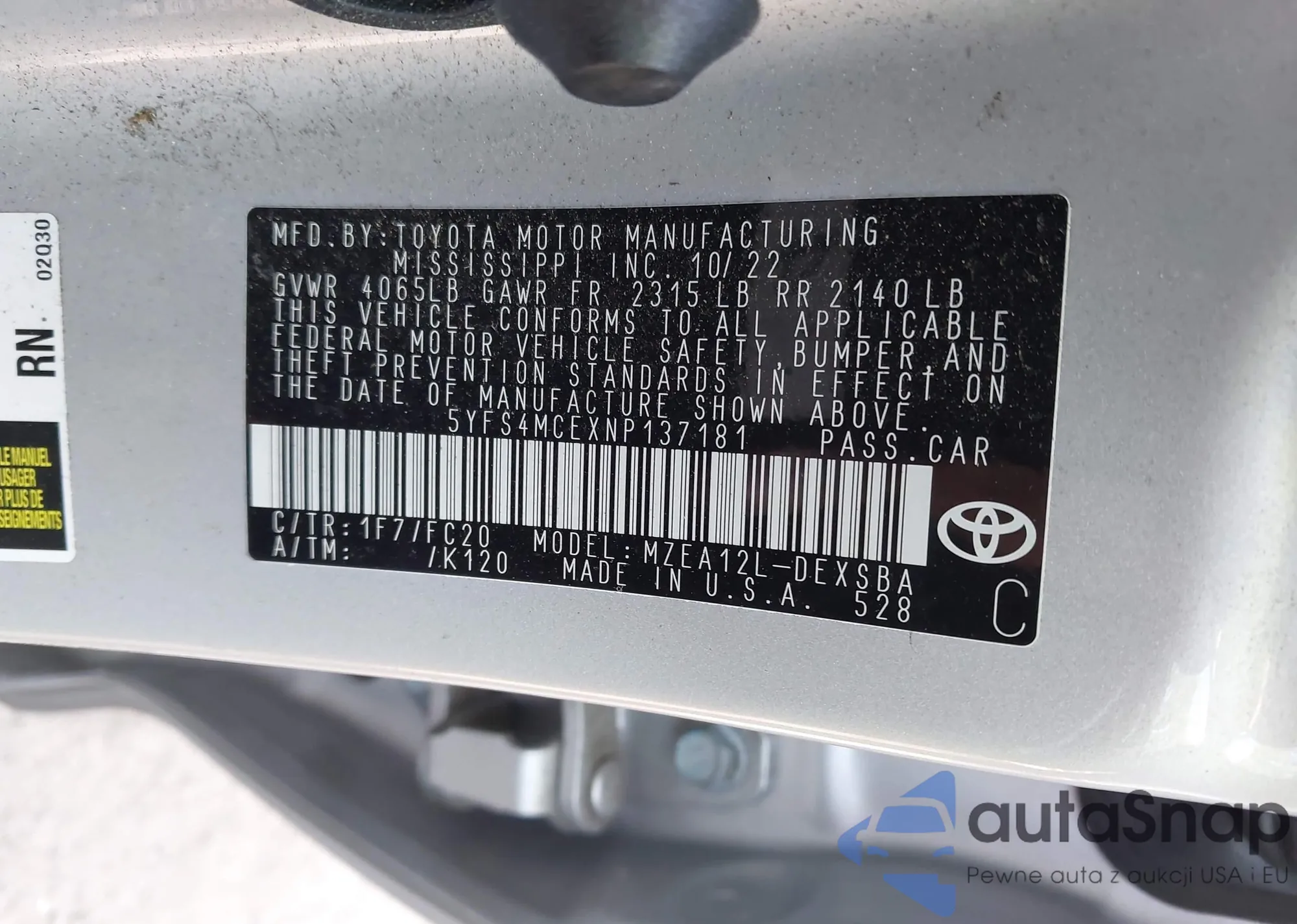 VIN: 5YFS4MCEXNP137181