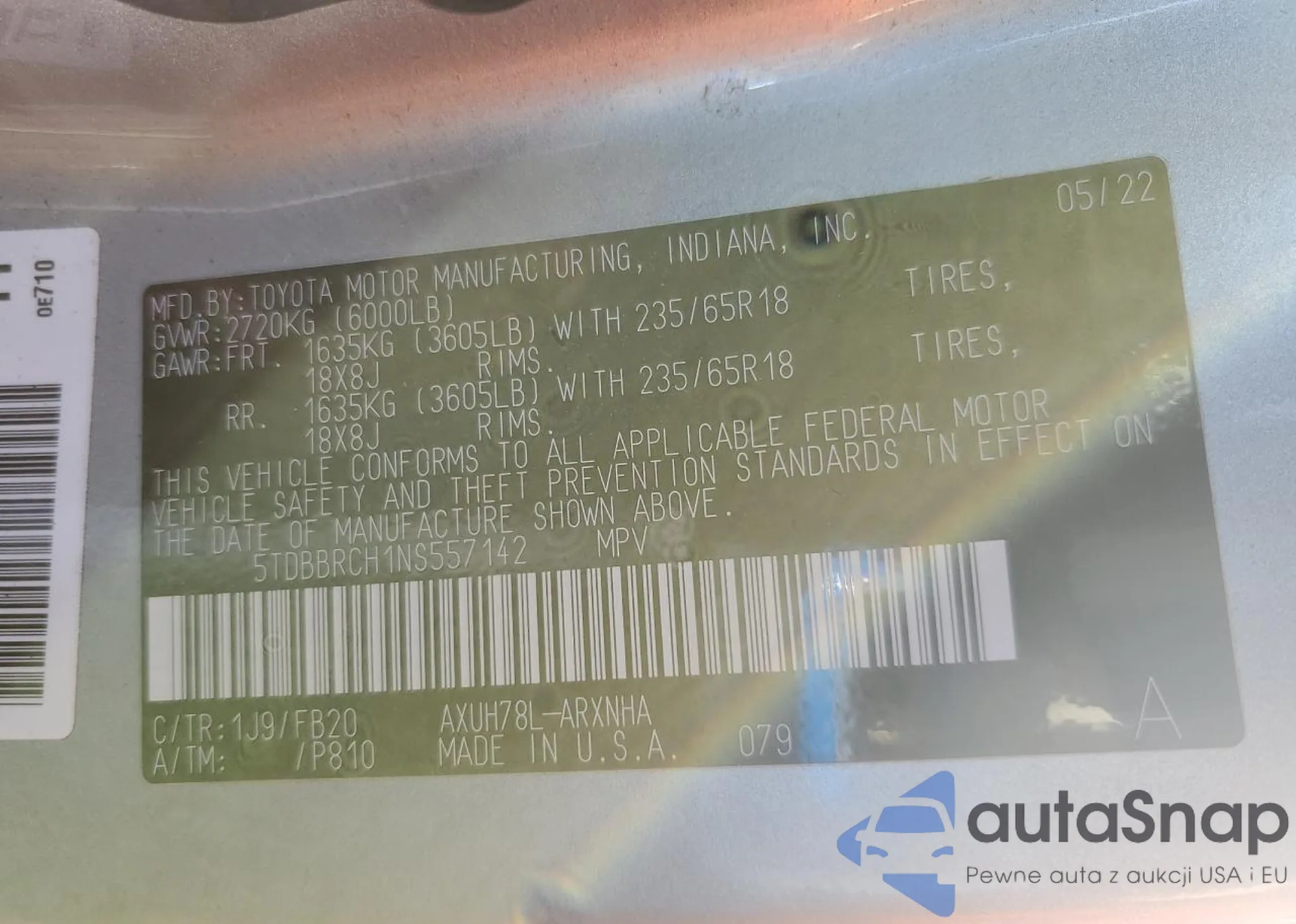 VIN: 5TDBBRCH1NS557142