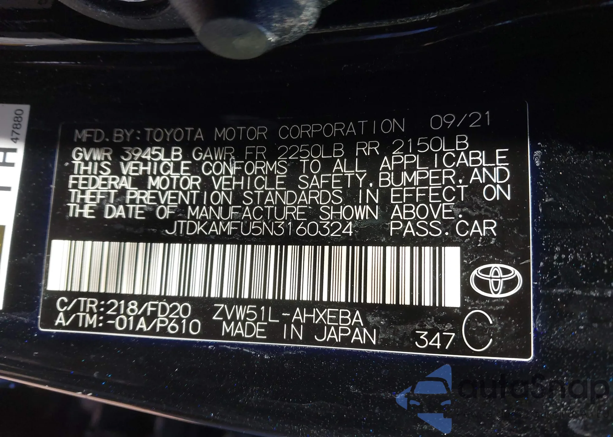 VIN: JTDKAMFU5N3160324
