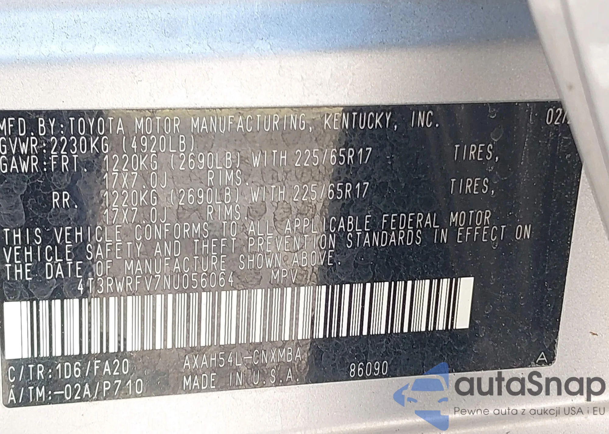 VIN: 4T3RWRFV7NU056064