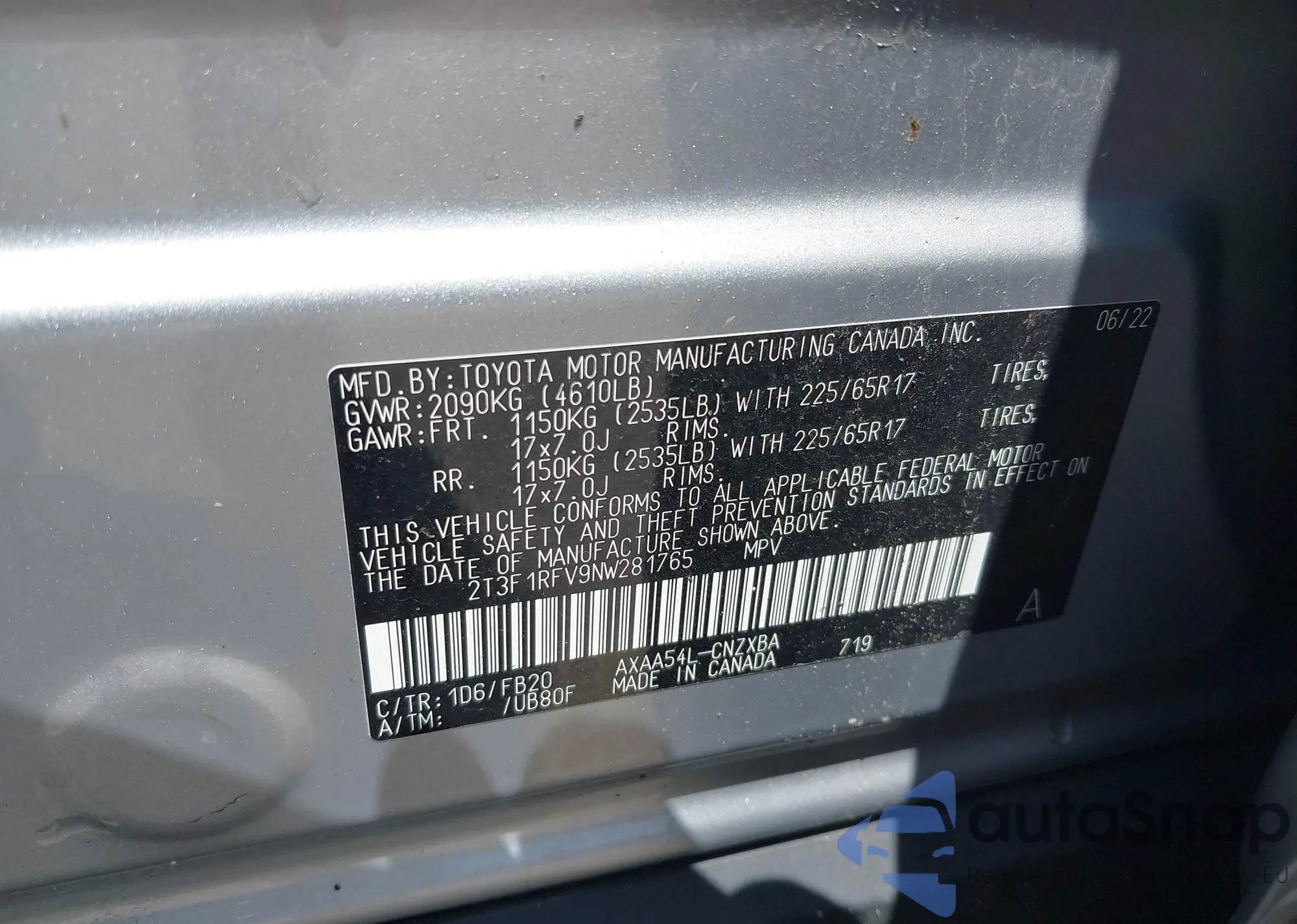VIN: 2T3F1RFV9NW281765