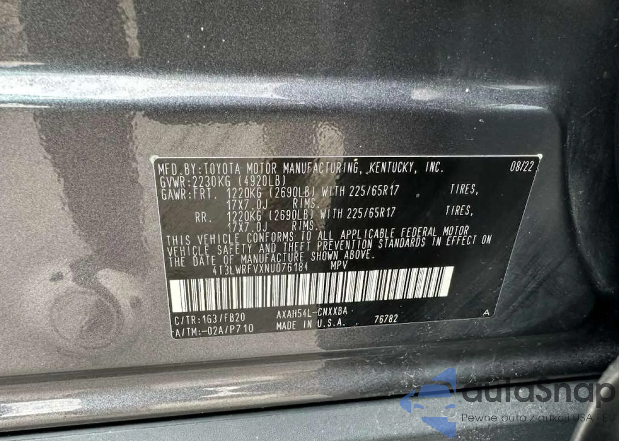 VIN: 4T3LWRFVXNU076184