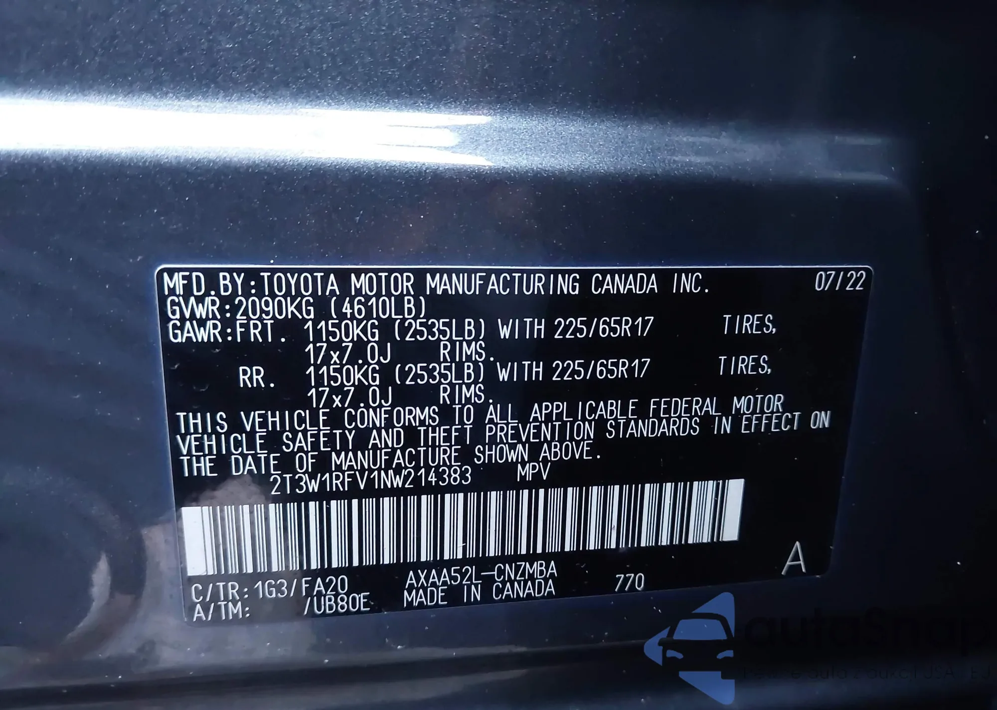 VIN: 2T3W1RFV1NW214383