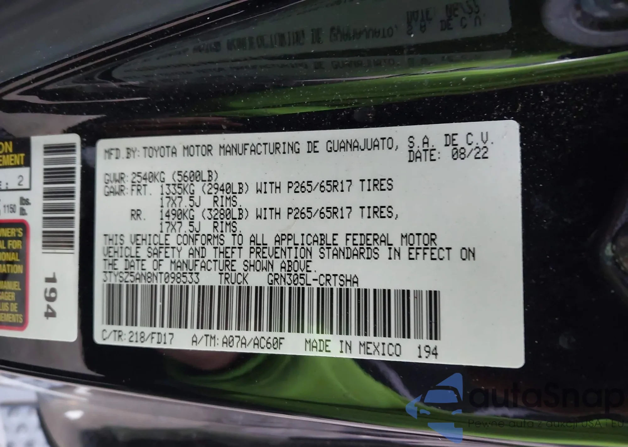 VIN: 3TYSZ5AN8NT098533