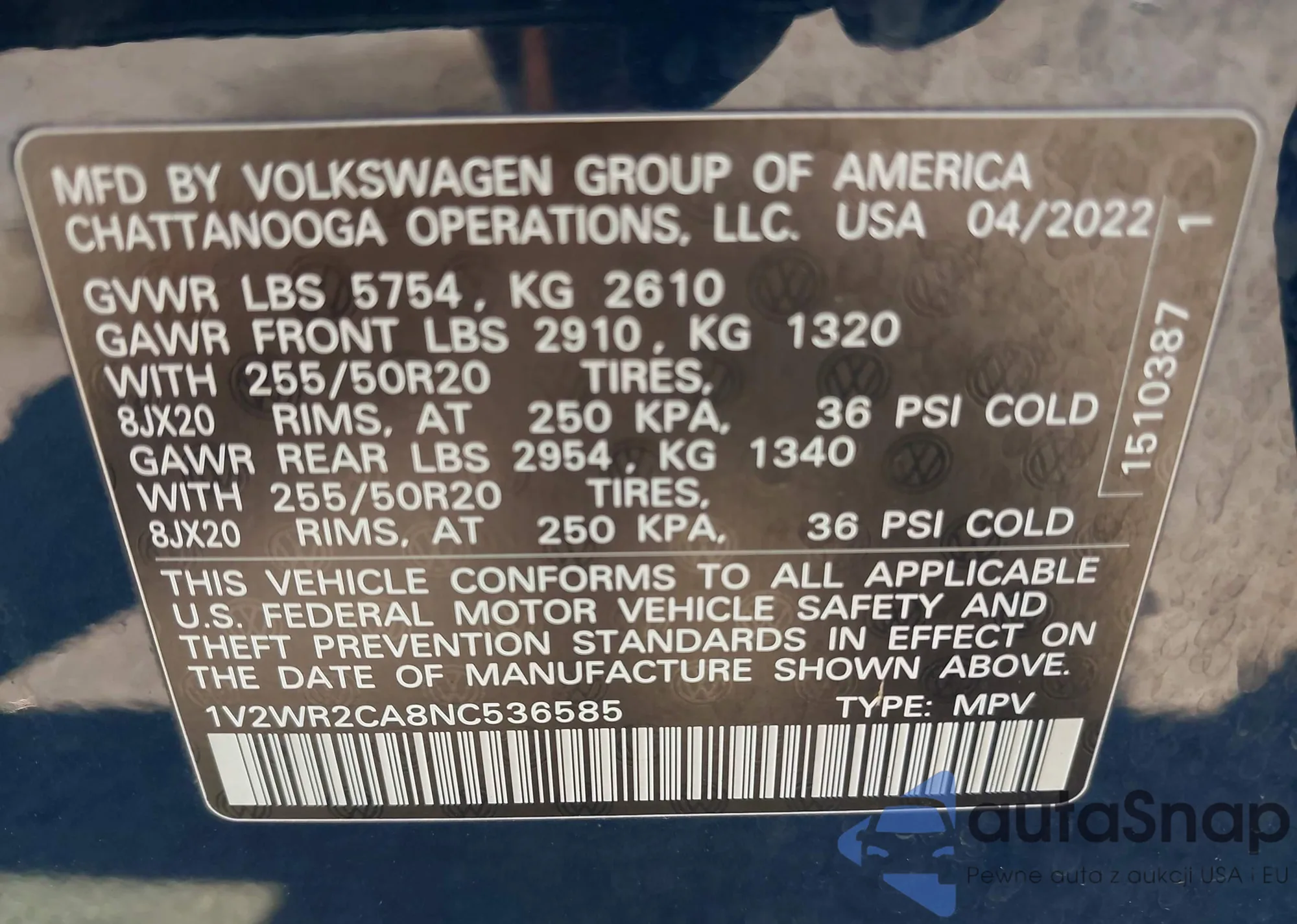 VIN: 1V2WR2CA8NC536585