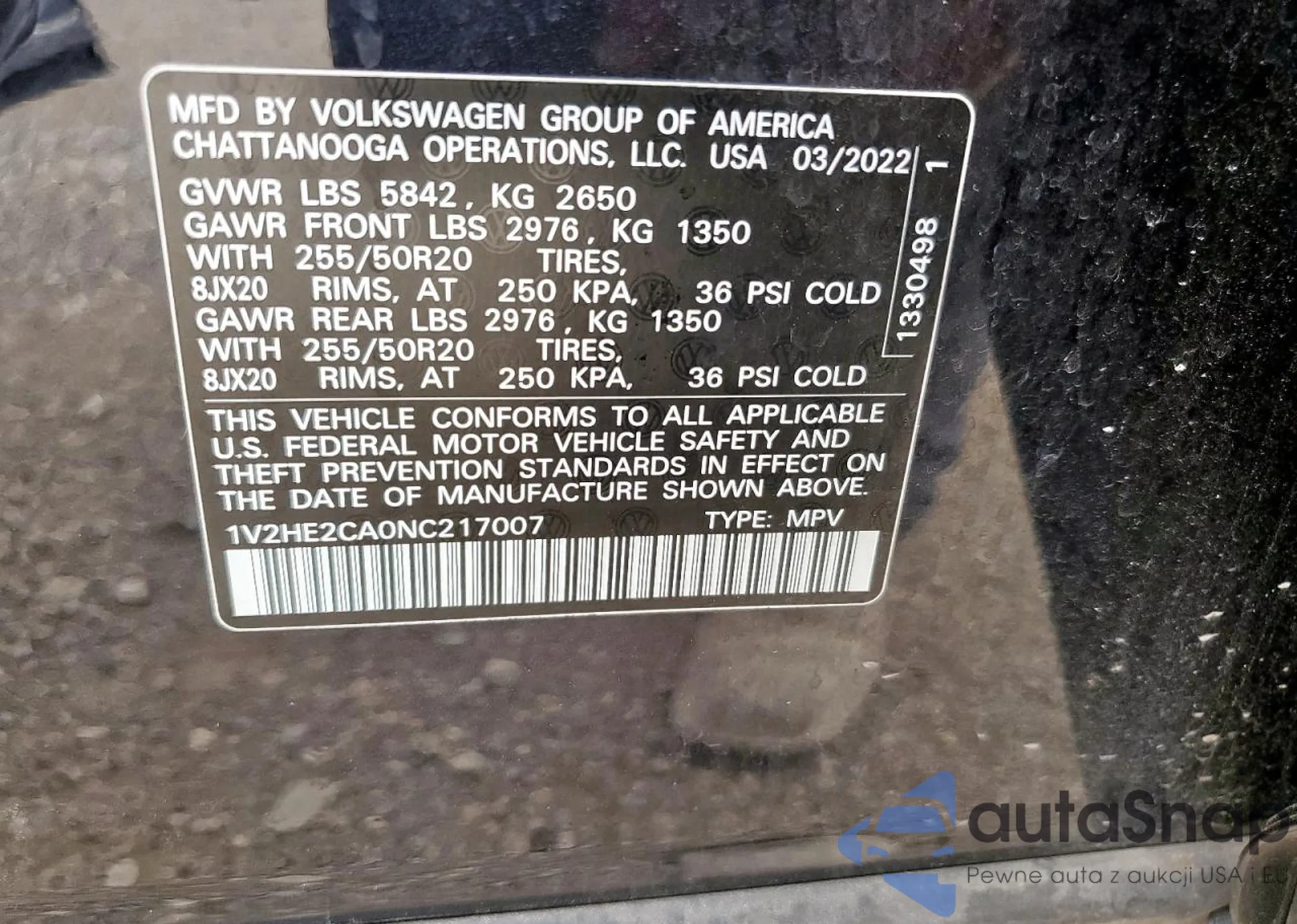 Samochód Volkswagen Atlas Cross Sport 2022 (VIN 1V2HE2CA0NC217007) ma dokumenty uniemożliwiające rejestrację. Mogą pojawić się trudności przy eksporcie i rejestracji. Skontaktuj się z ekspertami AutaSnap w celu znalezienia alternatywy.