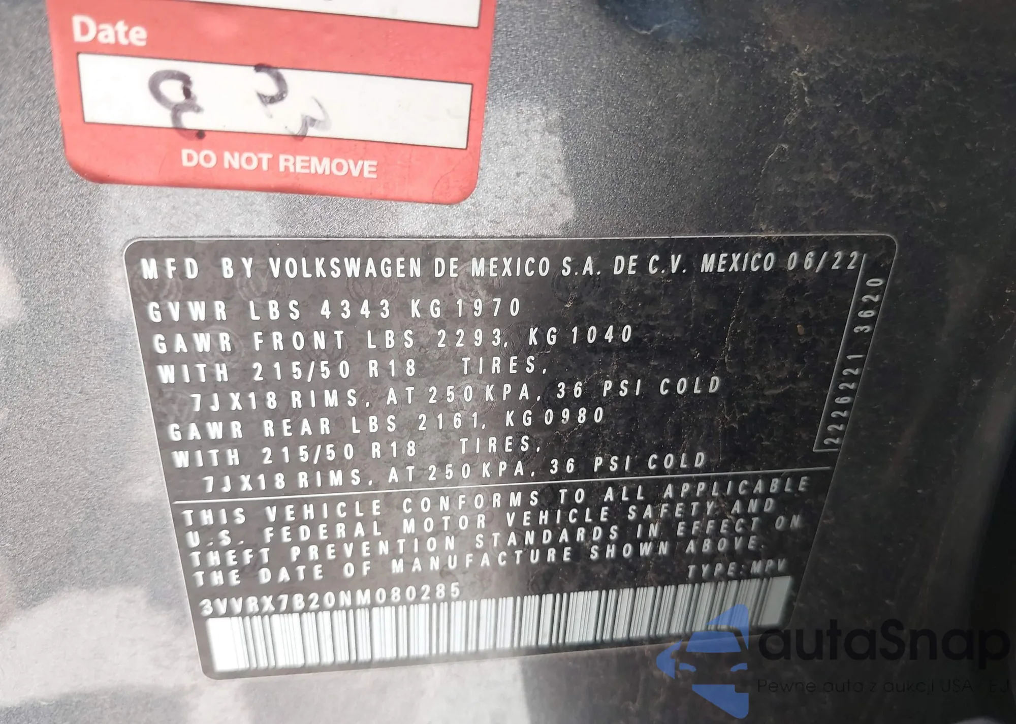 VIN: 3VVRX7B20NM080285