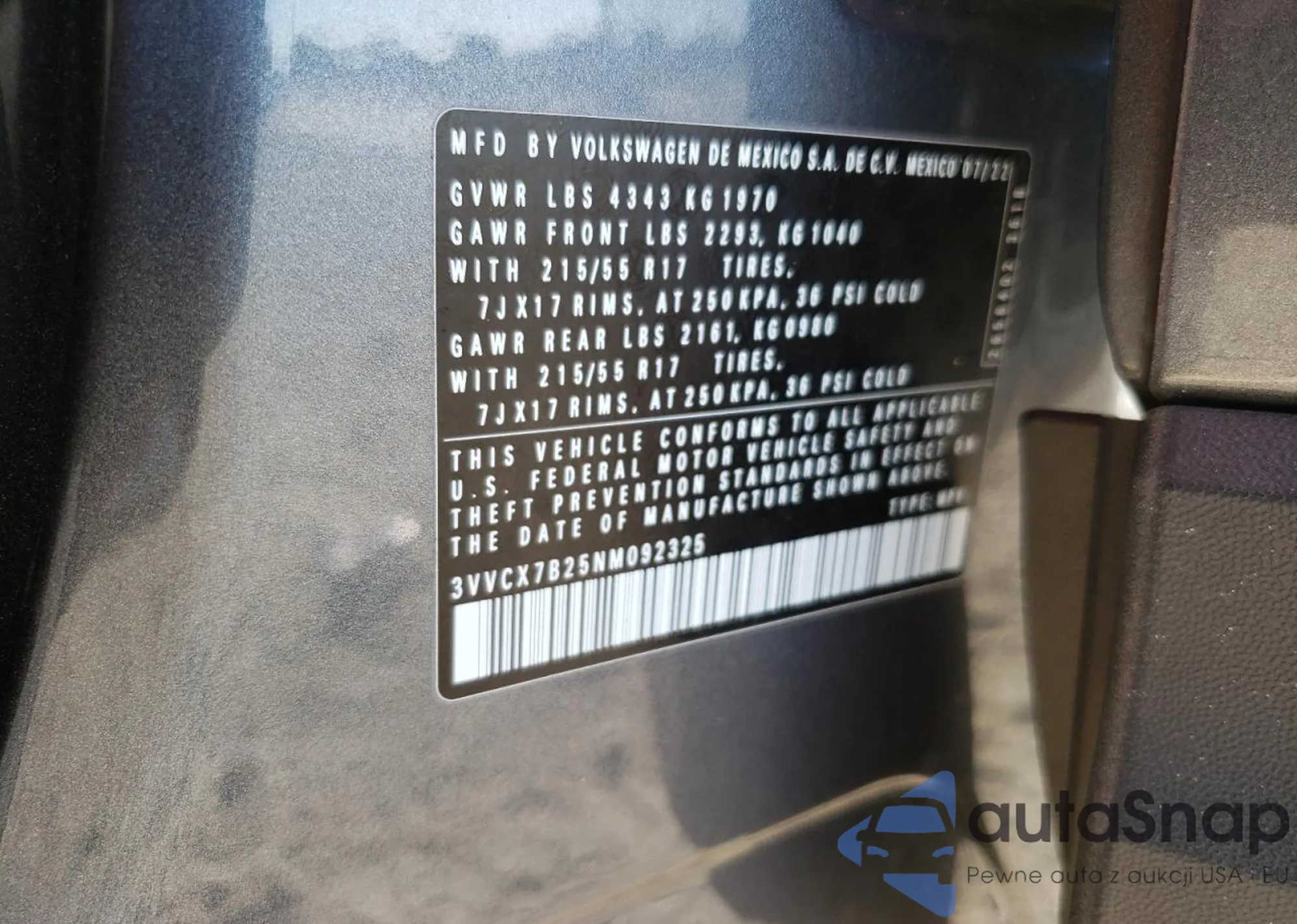 VIN: 3VVCX7B25NM092325