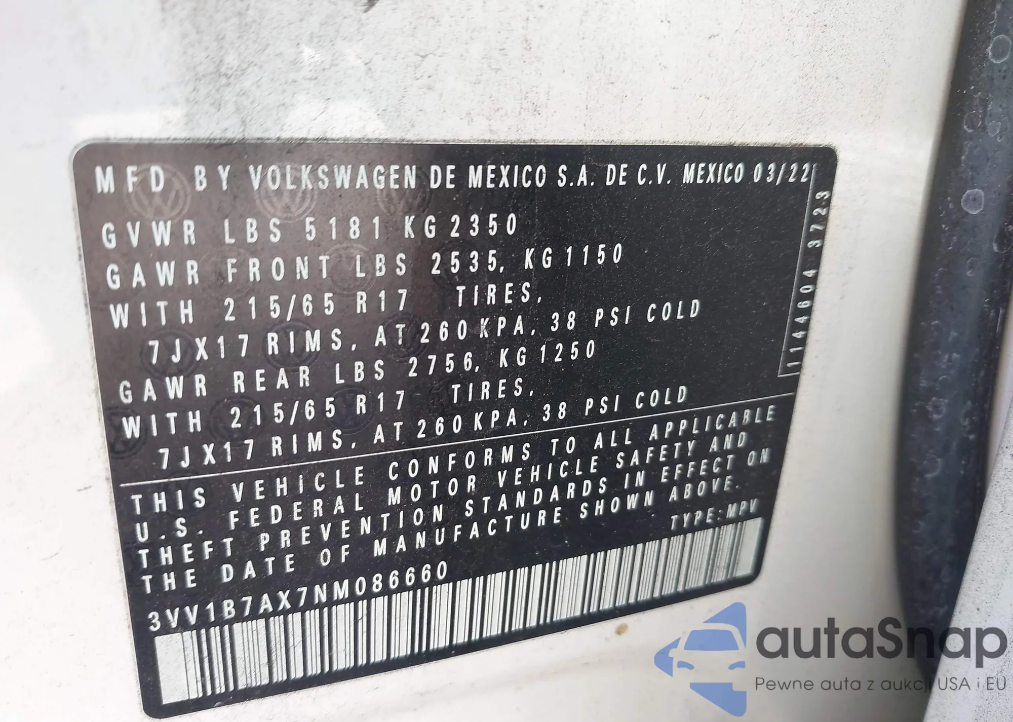 3VV1B7AX7NM086660 IAAI
