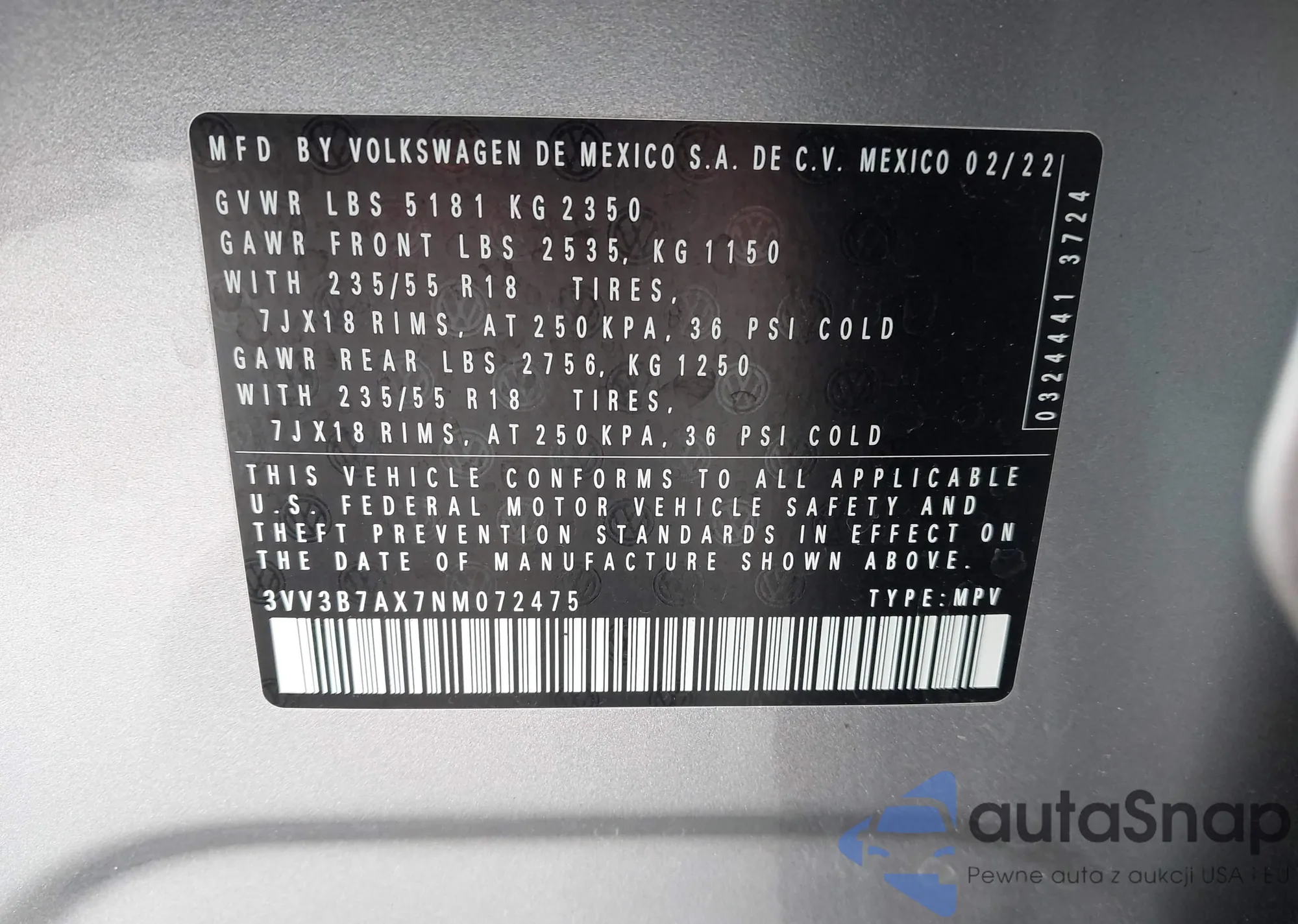 VIN: 3VV3B7AX7NM072475