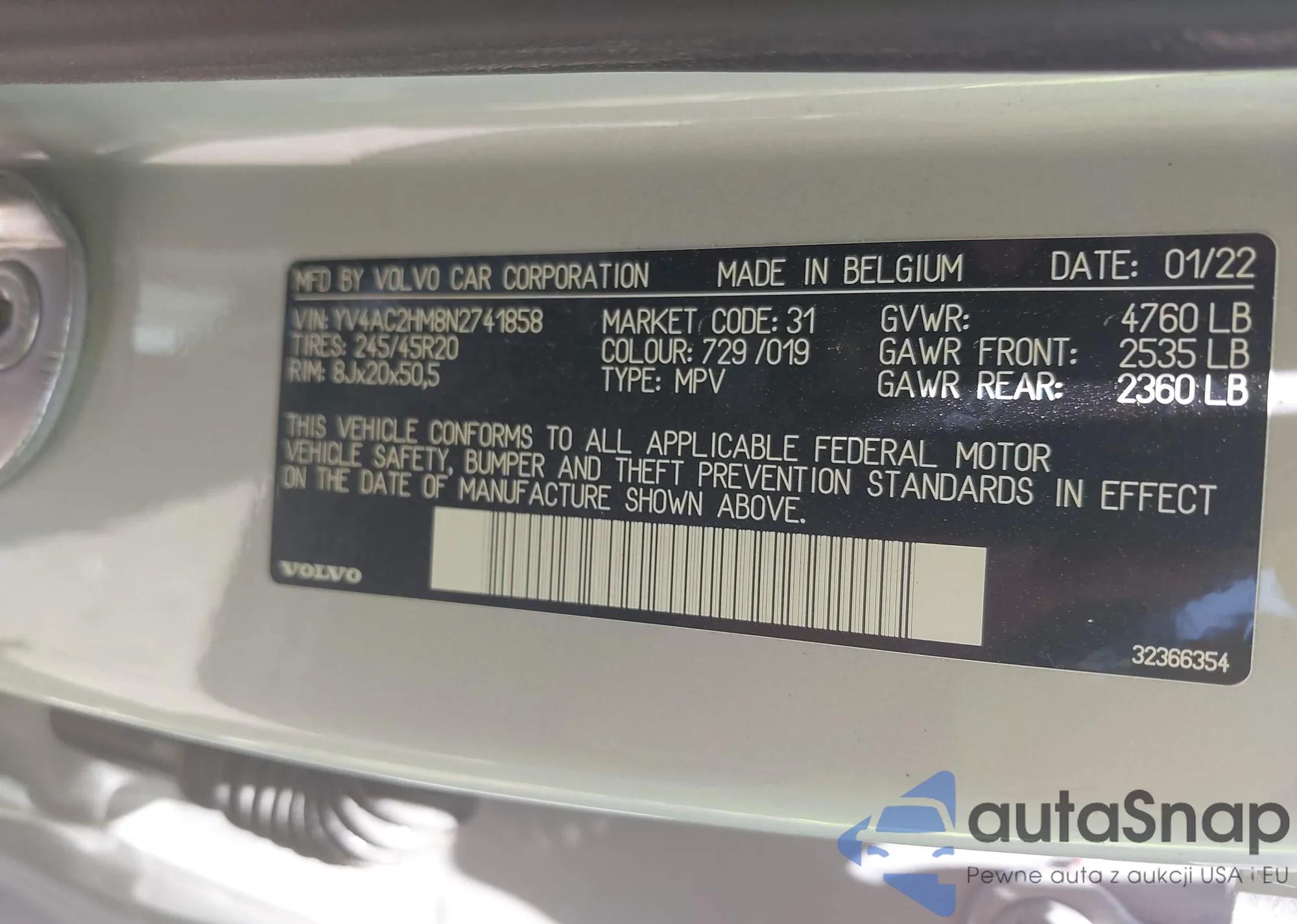 VIN: YV4AC2HM8N2741858