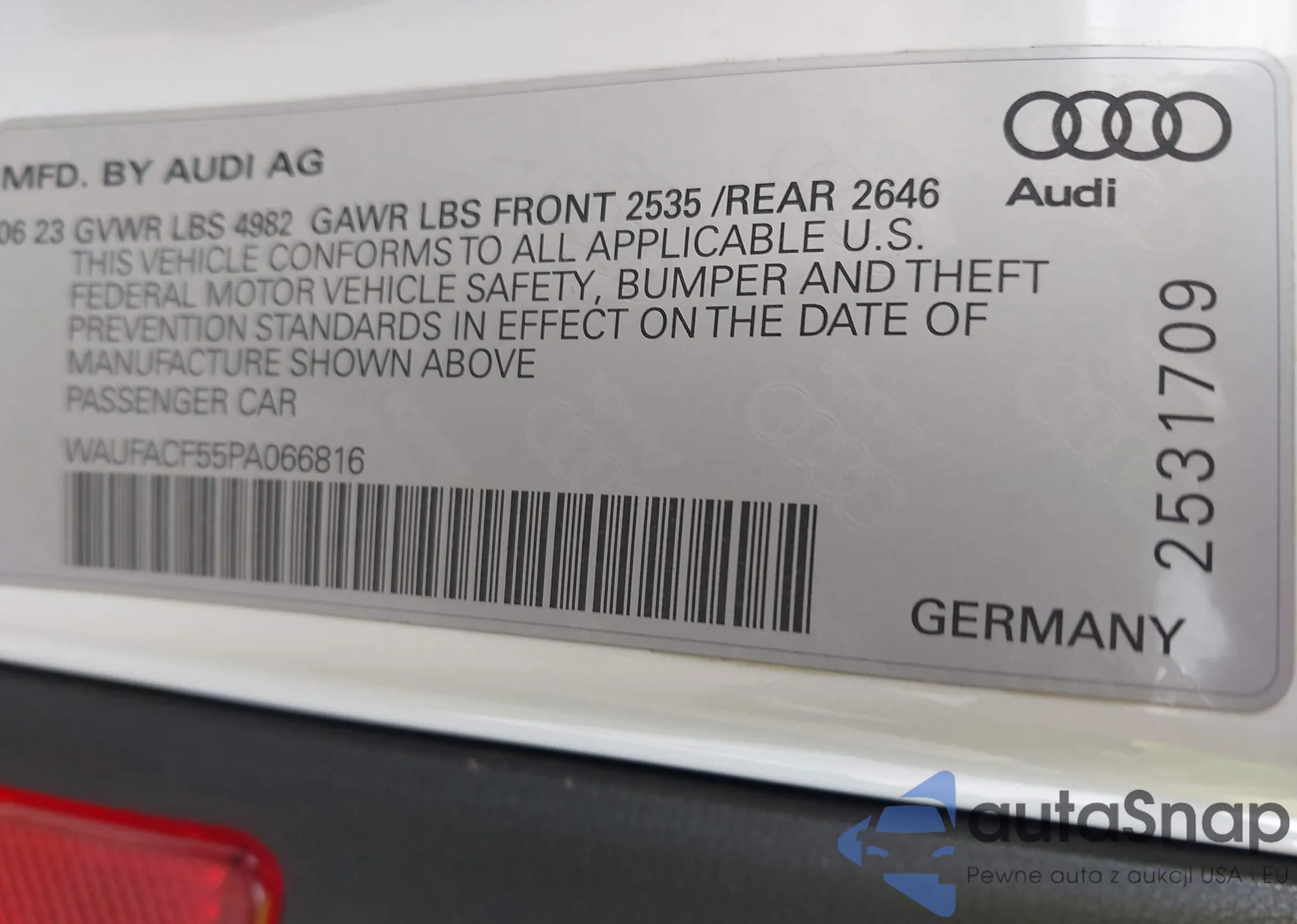 • VIN: WAUFACF55PA066816