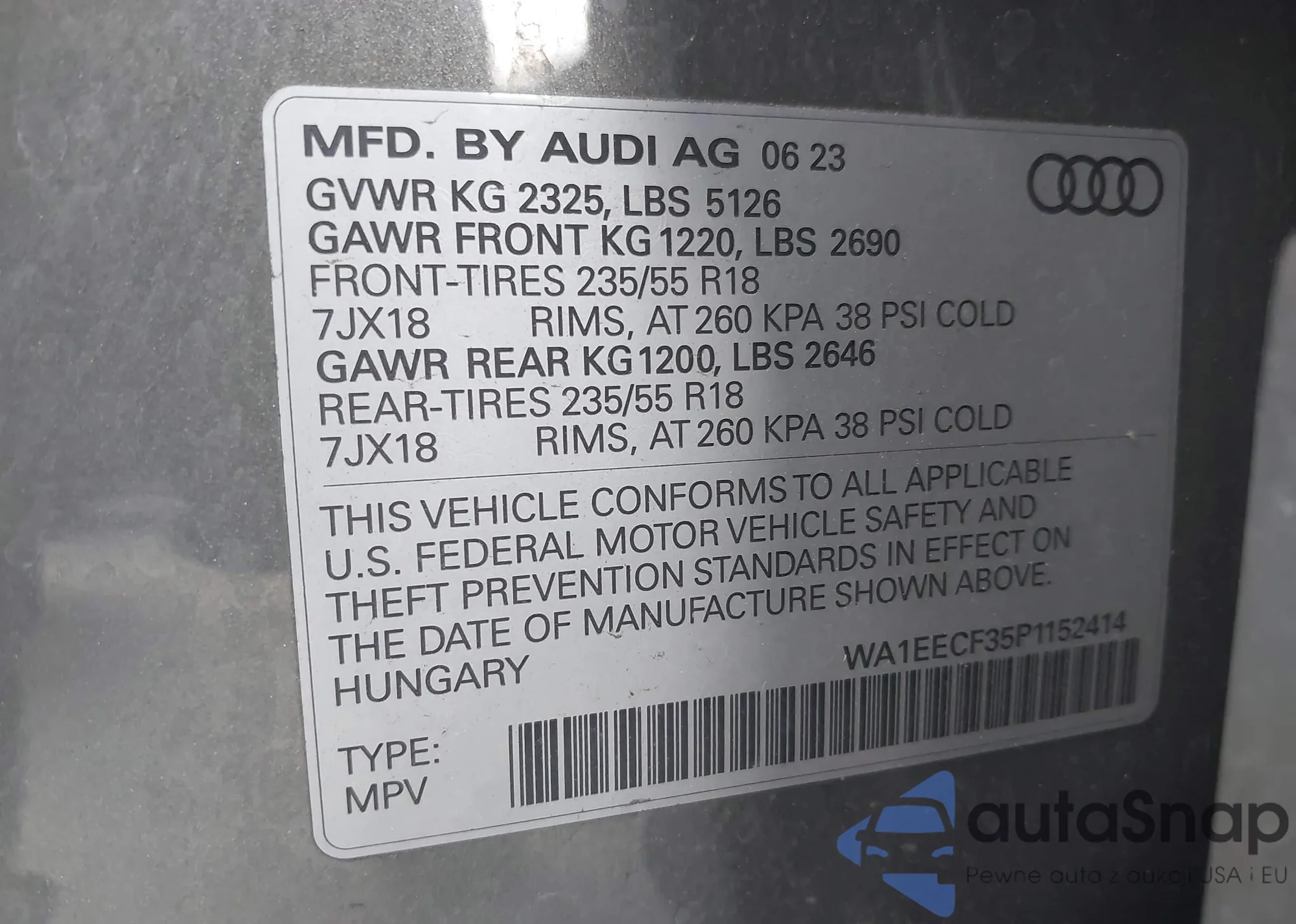 • VIN: WA1EECF35P1152414