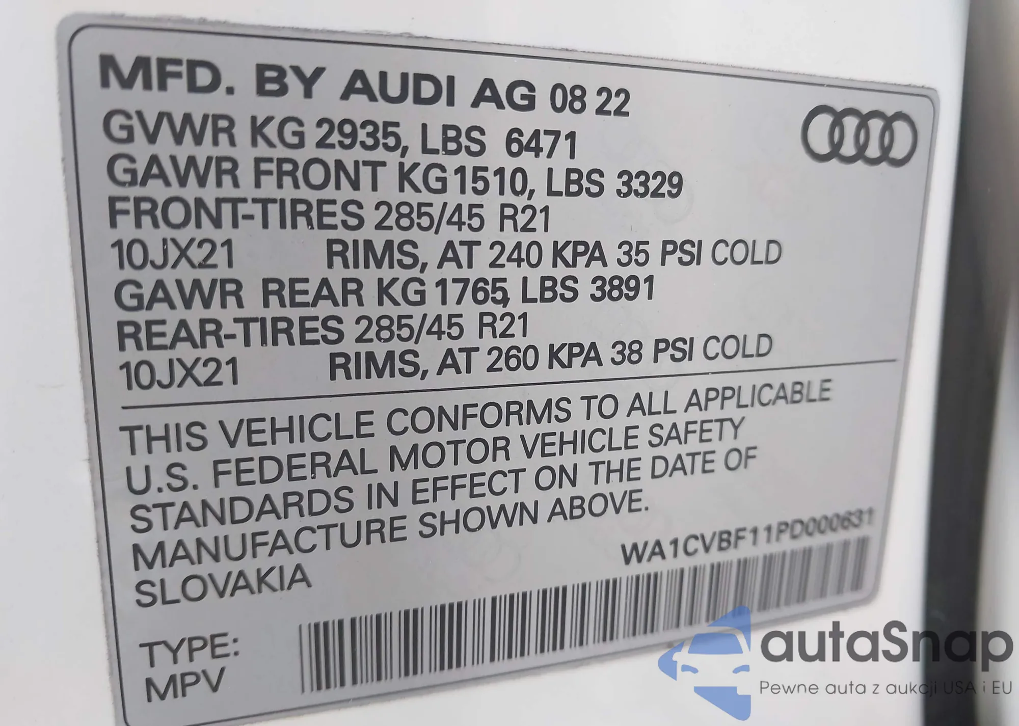 VIN: WA1CVBF11PD000631