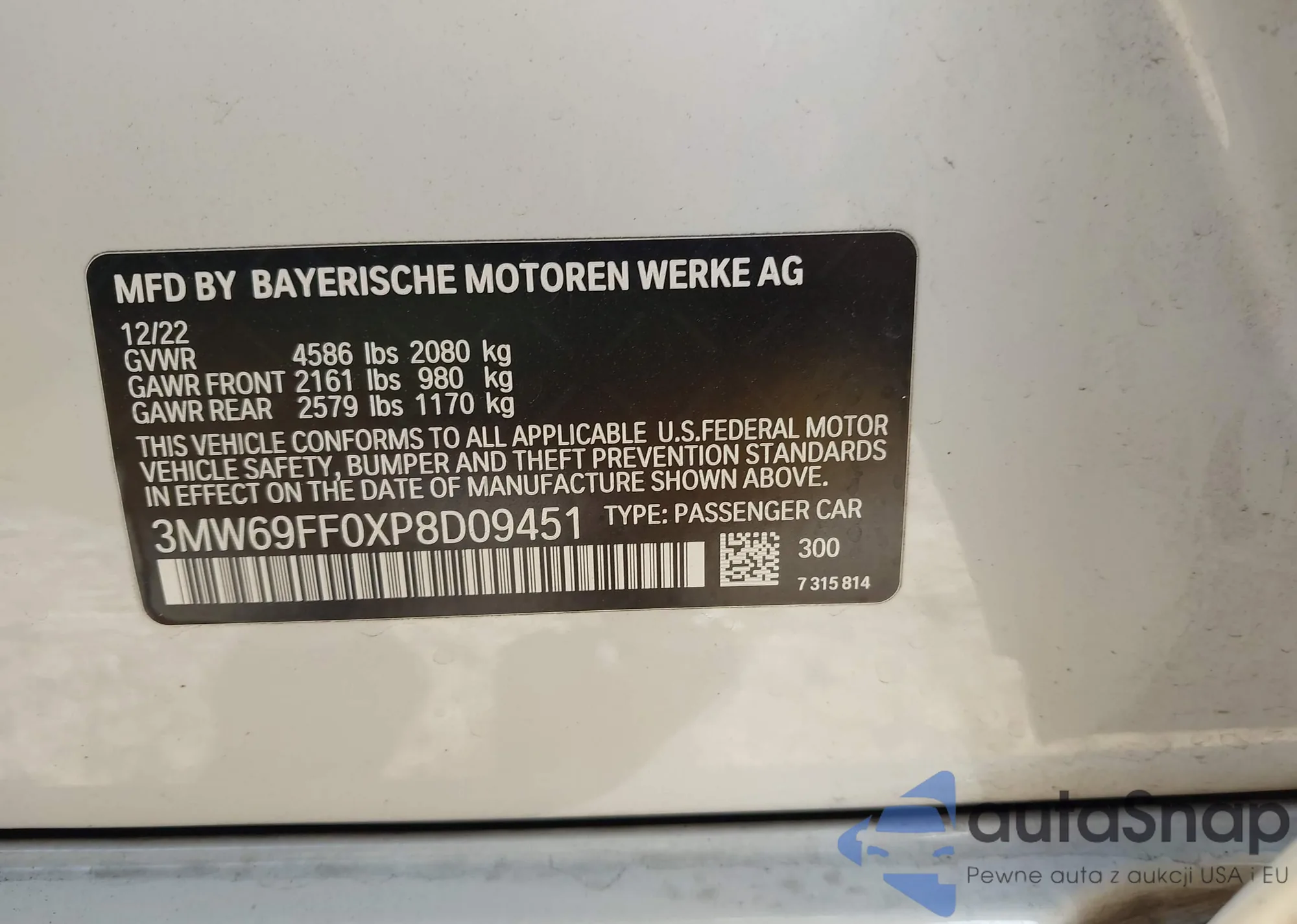 • VIN: 3MW69FF0XP8D09451