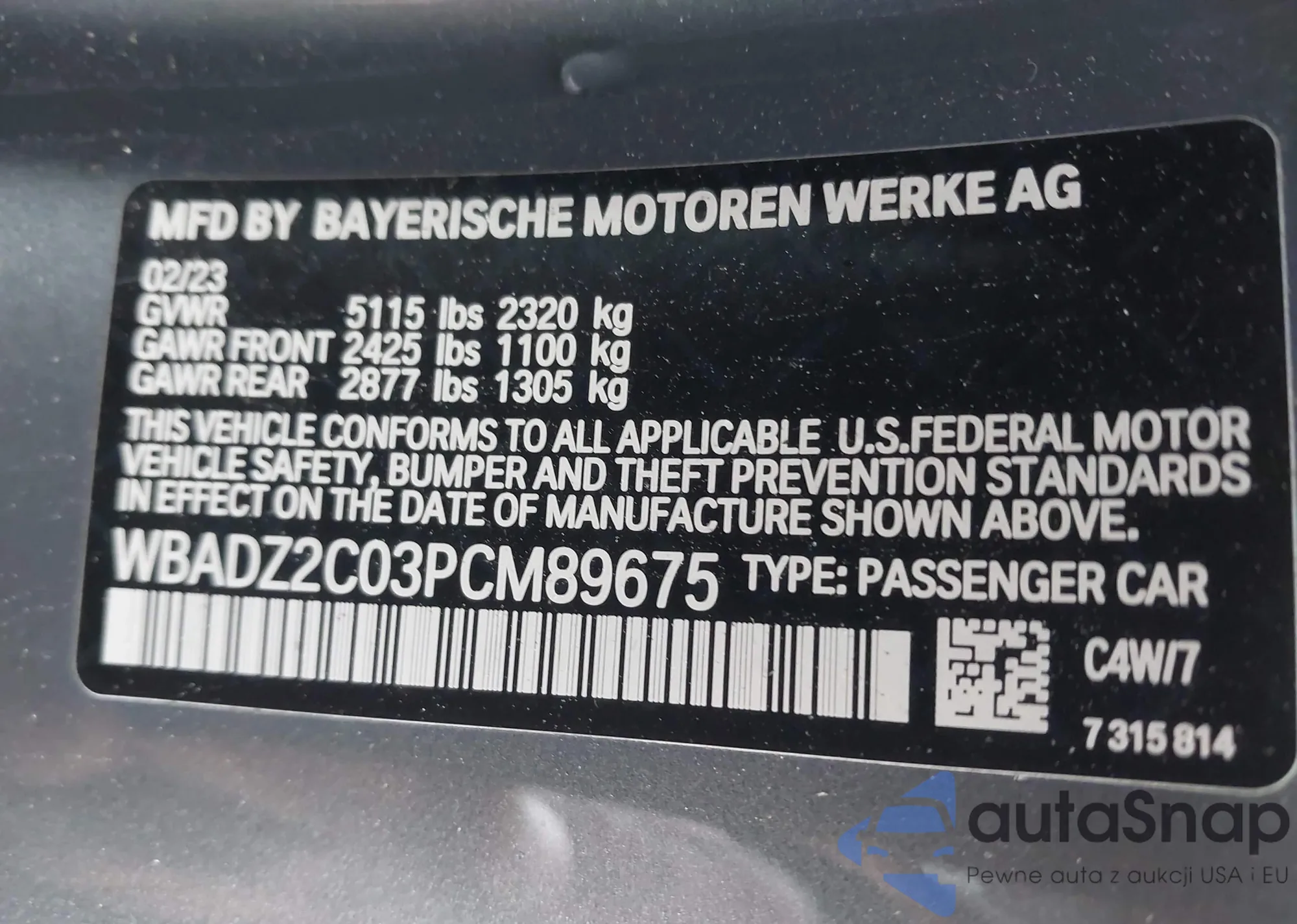 VIN: WBADZ2C03PCM89675