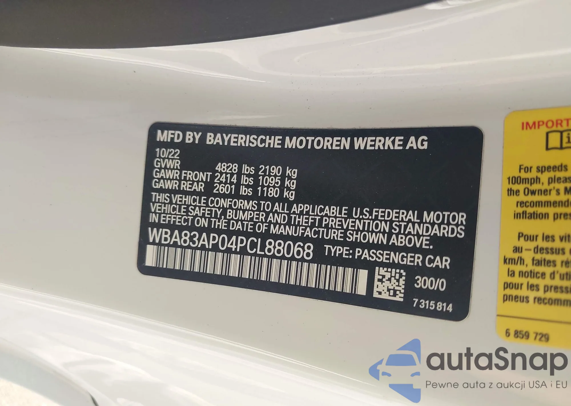 VIN: WBA83AP04PCL88068