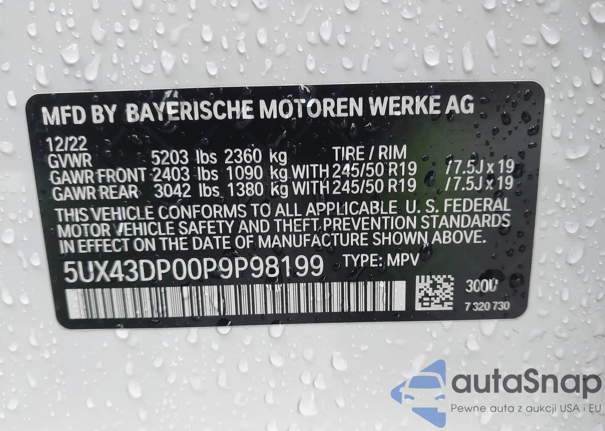 VIN: 5UX43DP00P9P98199