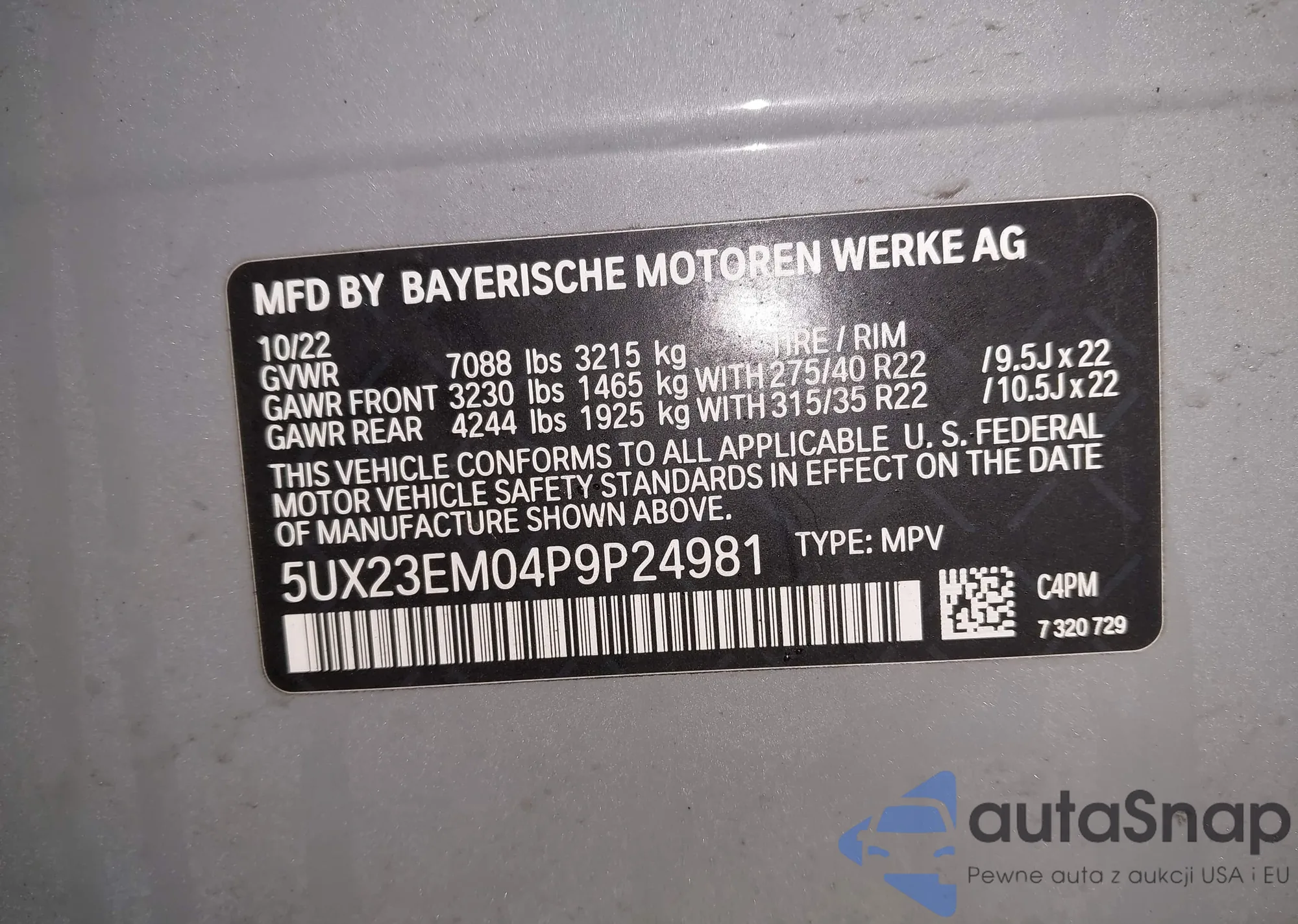 • VIN: 5UX23EM04P9P24981