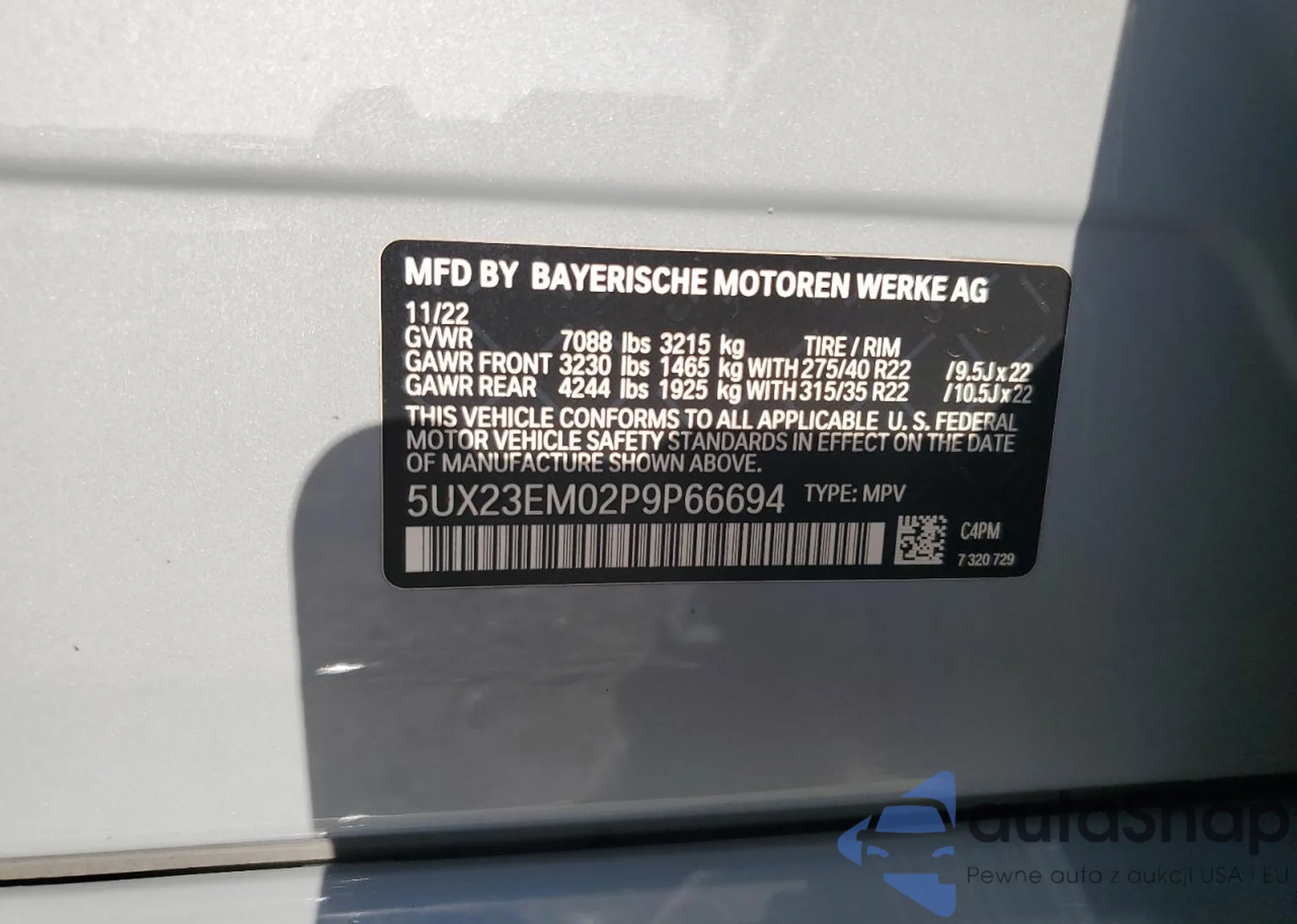 BMW X7 2023 – Historia pojazdu (sprzedany na COPART)