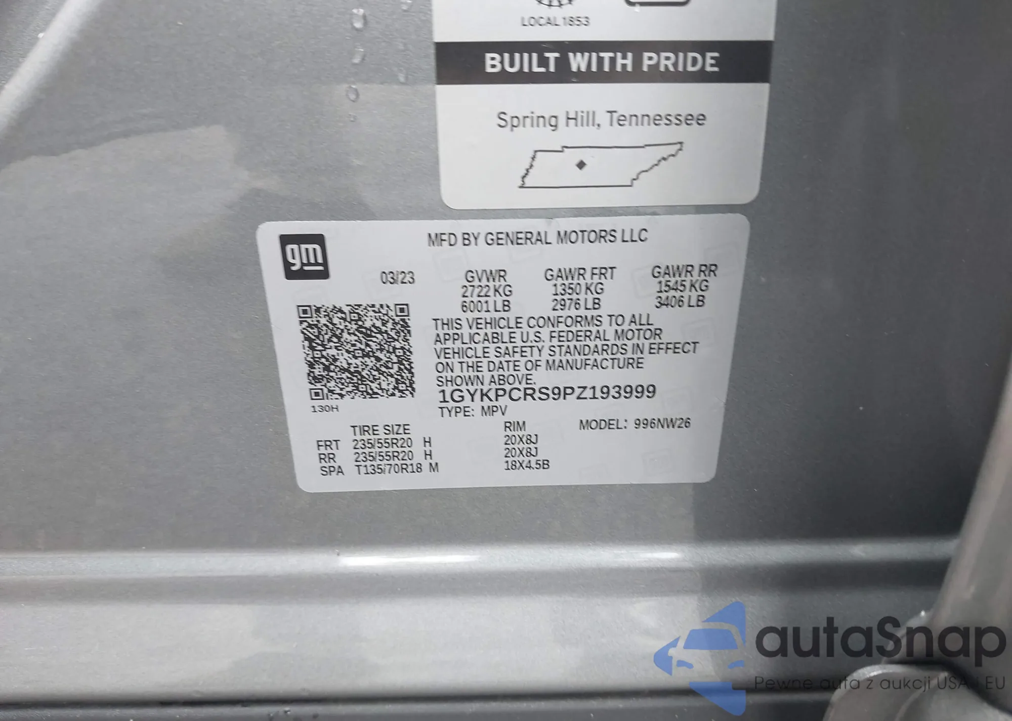 VIN: 1GYKPCRS9PZ193999