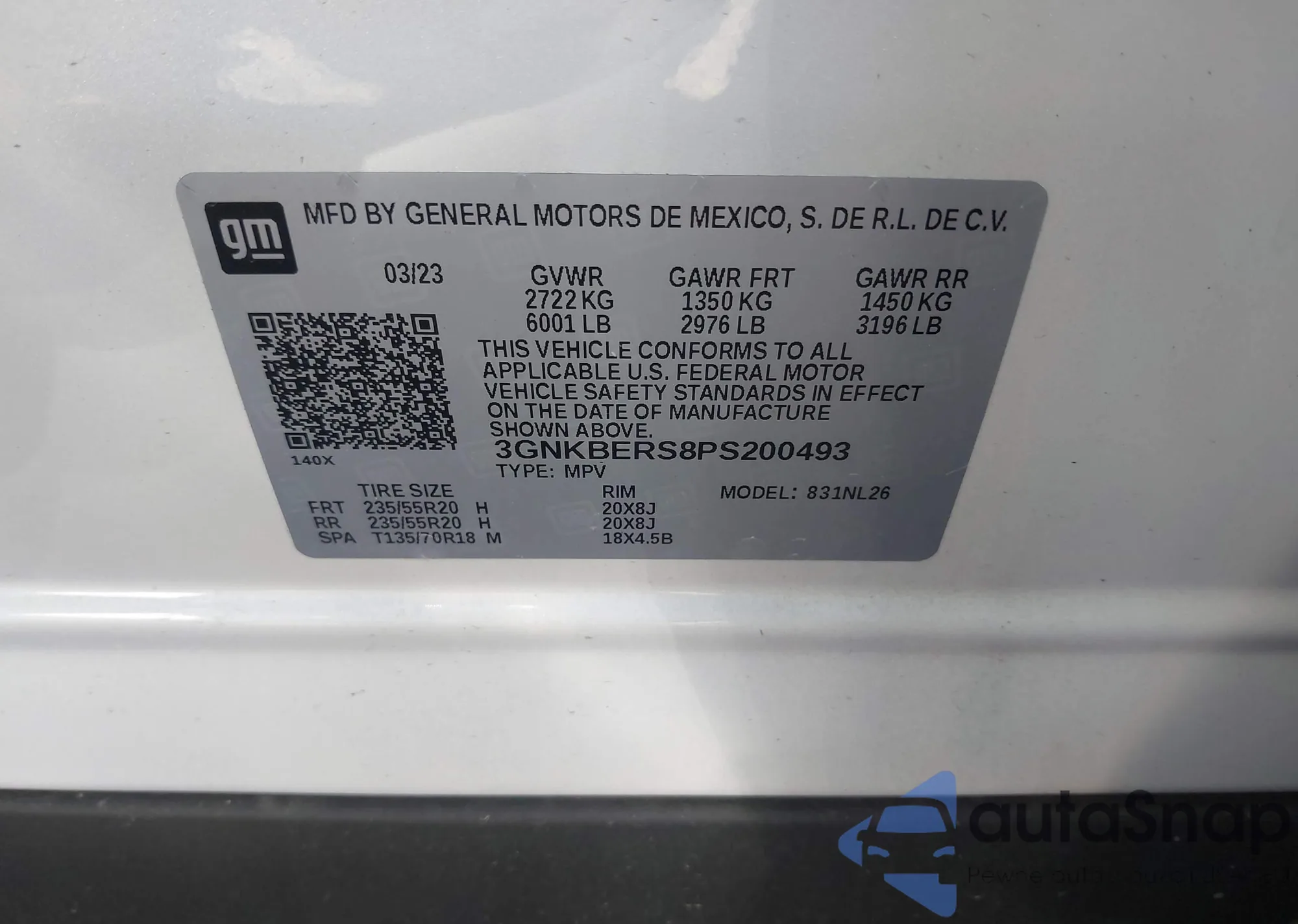 • VIN: 3GNKBERS8PS200493