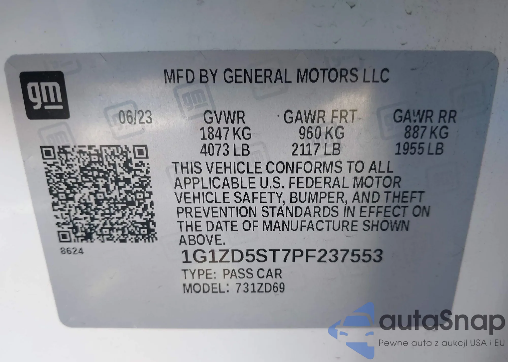 VIN: 1G1ZD5ST7PF237553