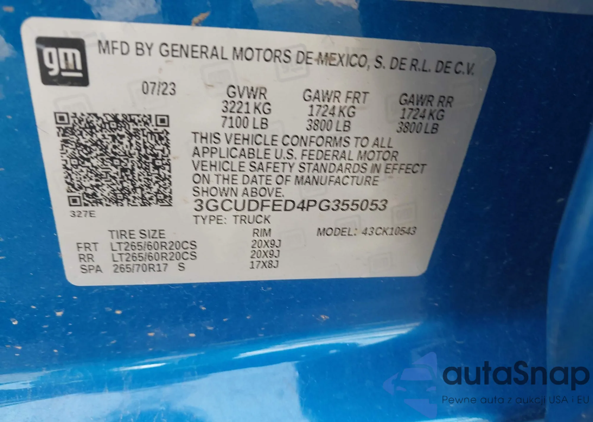 • VIN: 3GCUDFED4PG355053