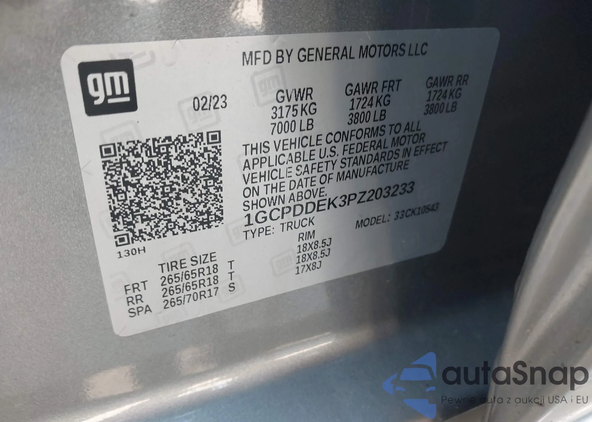 VIN: 1GCPDDEK3PZ203233